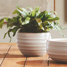 This hand-thrown pot has a weighty feel. Made with subtle ridges and a matte finish. The perfect little pot for your favorite herbs or colorful blooms. Tuck in a bookshelf or place on a windowsill to brighten the view.