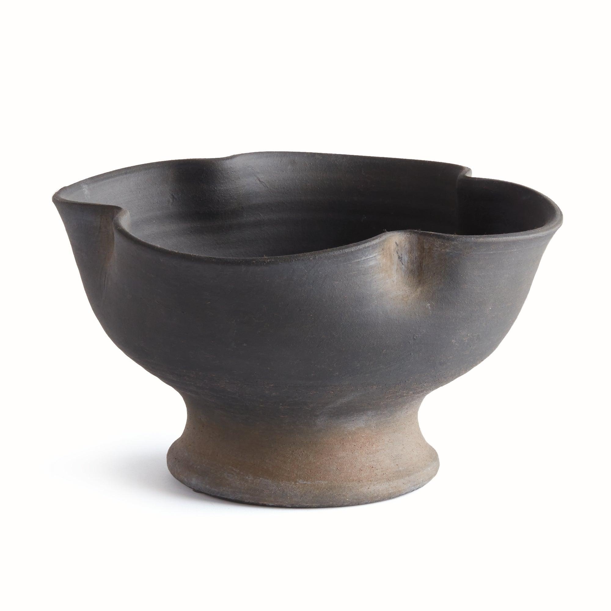 This footed bowl is hand thrown and formed by an artisan's touch. But the real story is in the glaze. The dynamic texture is referred to as a 'cold finish', when the piece is not glazed a second time, creating a distinctive hand rubbed, matte finish. Simply stunning.