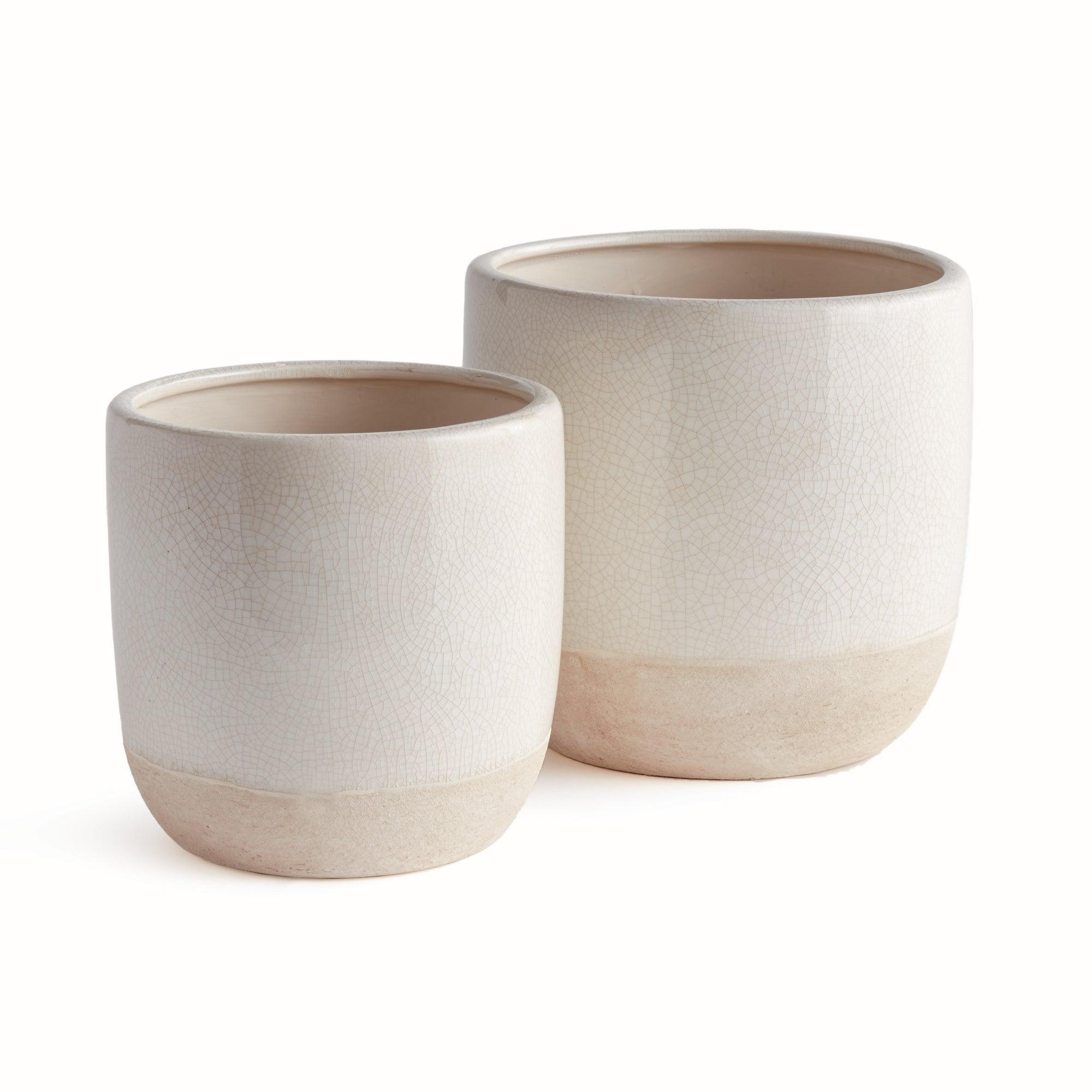 In the perfect shade of warm white and finished in a crackle glaze, this pair of pots add a subtle sophistication to any space. The raw clay base is the natural touch that grounds the piece. Add your favorite herbs or colorful blooms to complete the look.