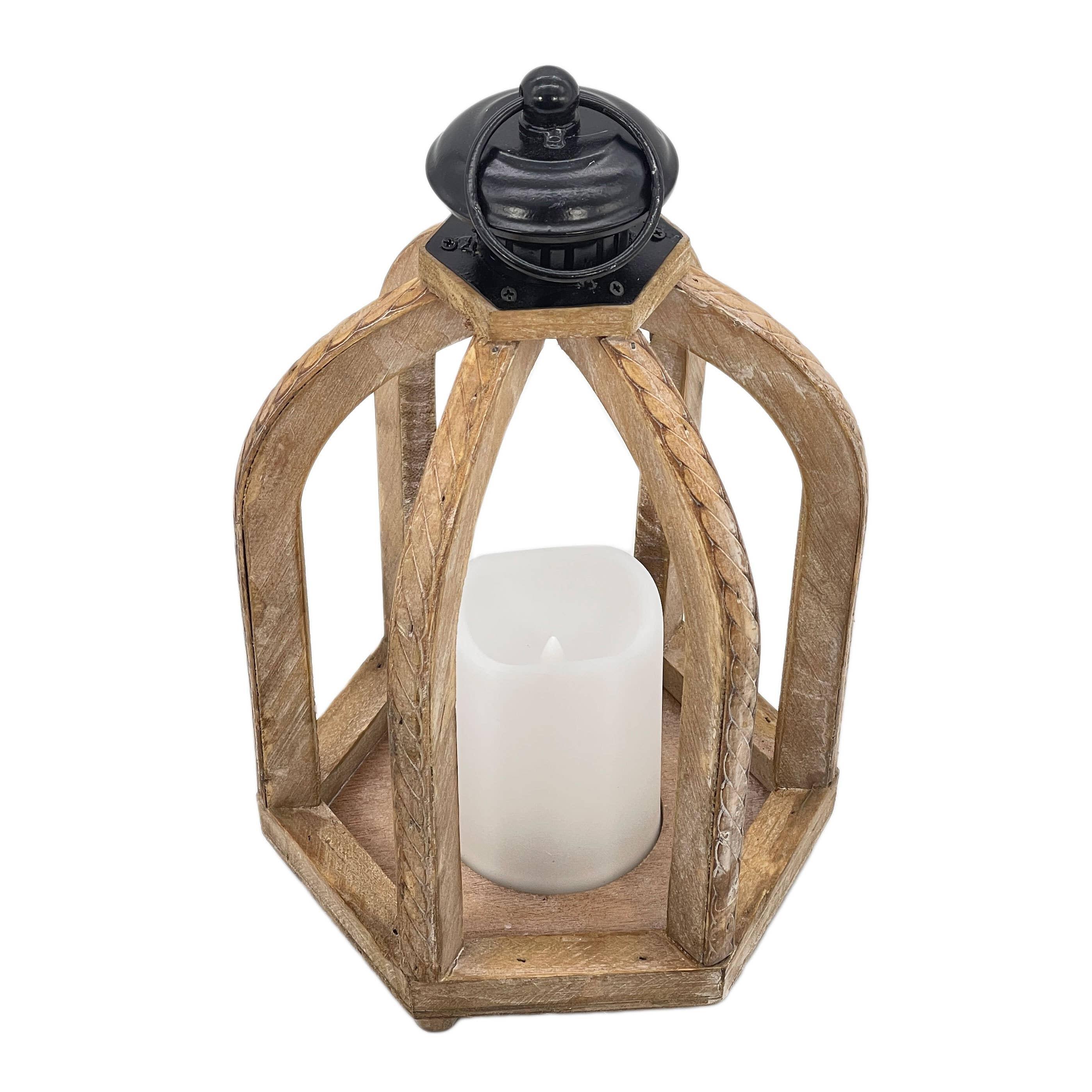 Rustic Wooden LED Candle Lantern