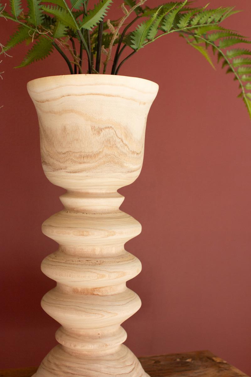 Turn heads with these turned wood towers with cups for candles, plants, or solo displays. This trio of turned towers stands alone or coordinates with other pieces to make your unique arrangement. Place them together or stagger them for a tiered look.