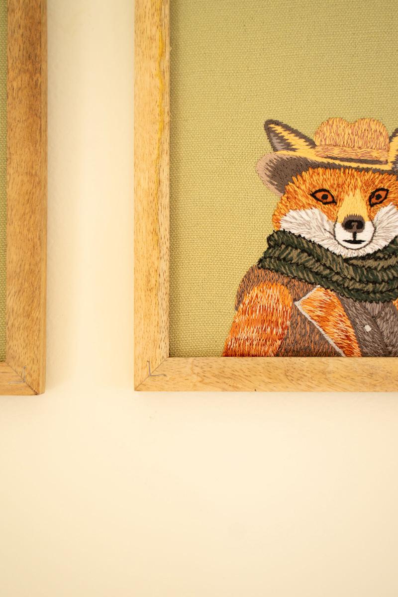 One sawtooth hanger each. Padded and machine embroidered. Finished on back with cloth.