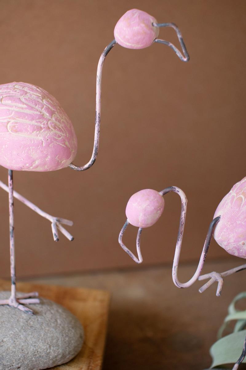 Set Of Two Painted Clay Flamingos On Rock Bases (Pack Of 2)