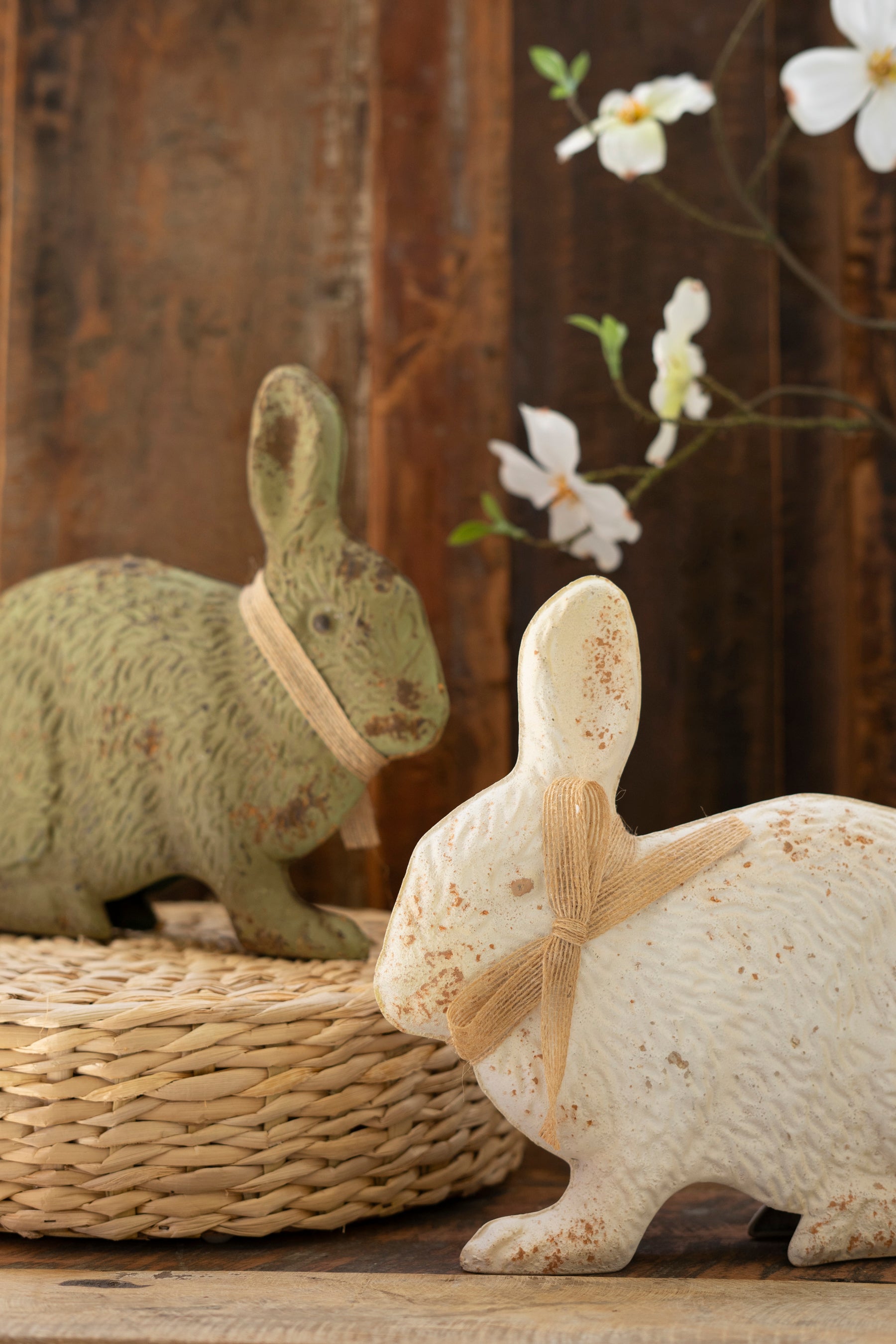 This set of two painted metal rabbits in green and white gift makes a sweet Easter gift. Group the pair or separate them to hide in the house. They also make a great addition to your spring centerpiece. Â