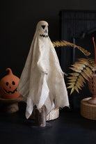 Tall Painted Jute Halloween Ghost On A Eucalyptus Wood Base (Pack Of 2)