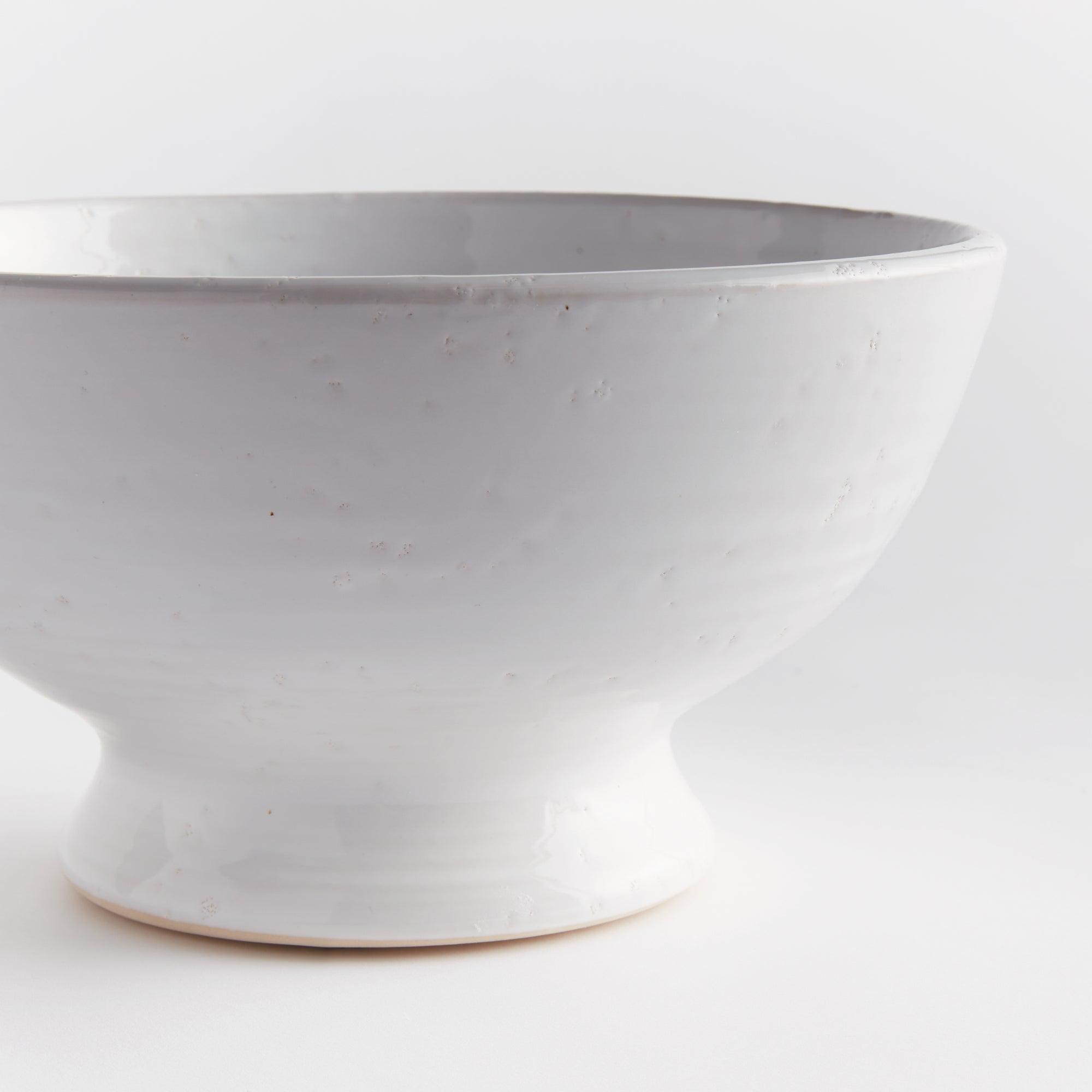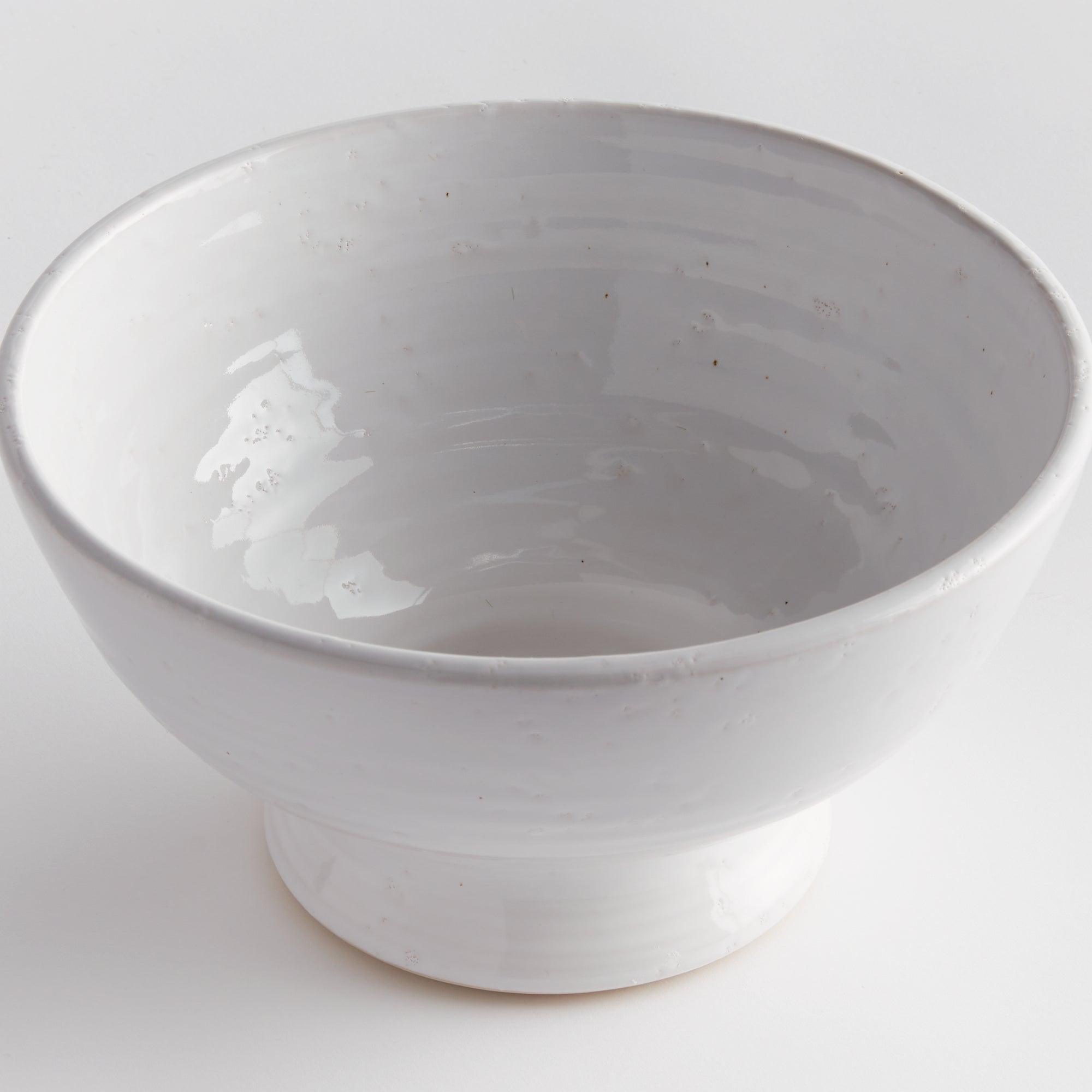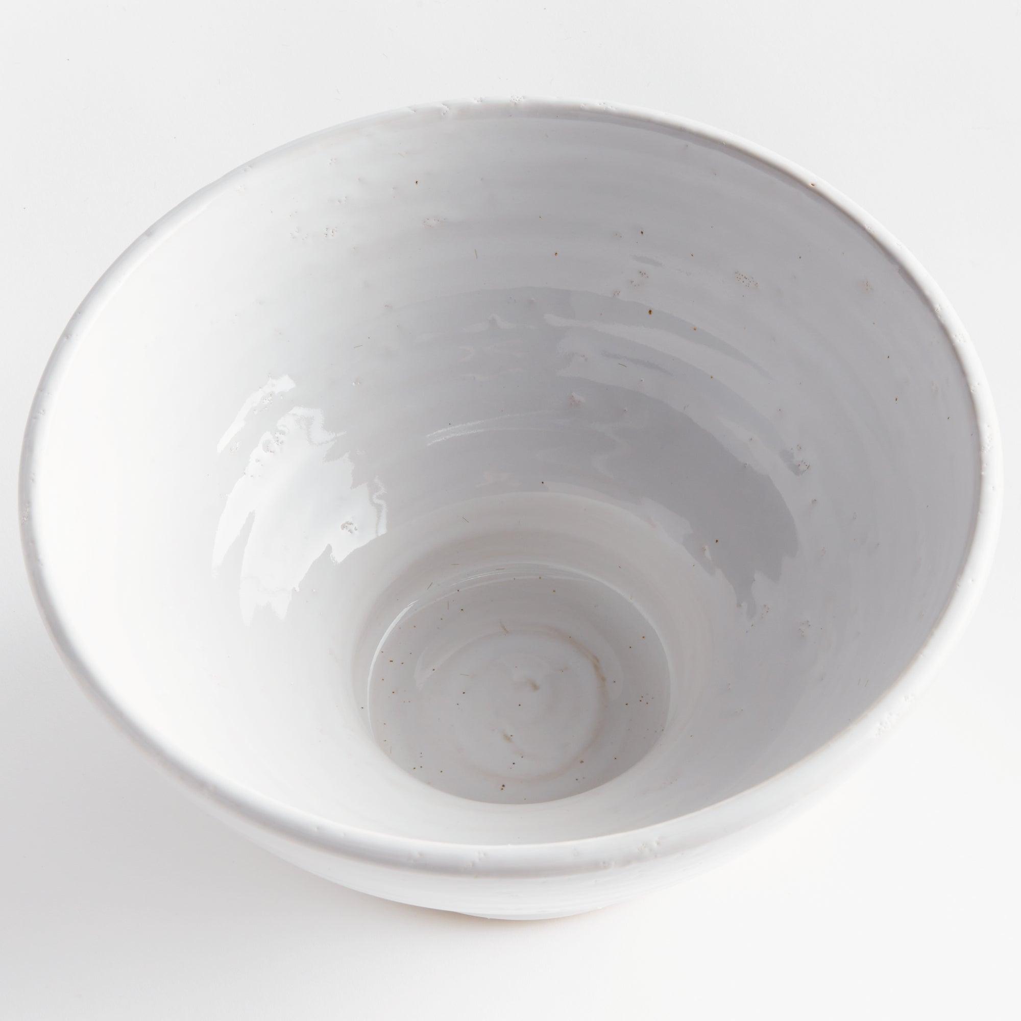 Subtle throw lines and natural textures from the firing process give this terracotta bowl a vintage look. Finished in a warm white glaze, it is beautiful displayed as is, or add a few natural orbs for added texture and color.