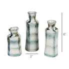 Tiny, slouched and hand painted this trio of ceramic vases feels like it comes right from a ceramics studio with a one-of-a-kind look and feel. Set of 3: $3, $4, $5, Sm: 2x2x4, Med: 2x2x5, Lrg: 2x2x6