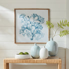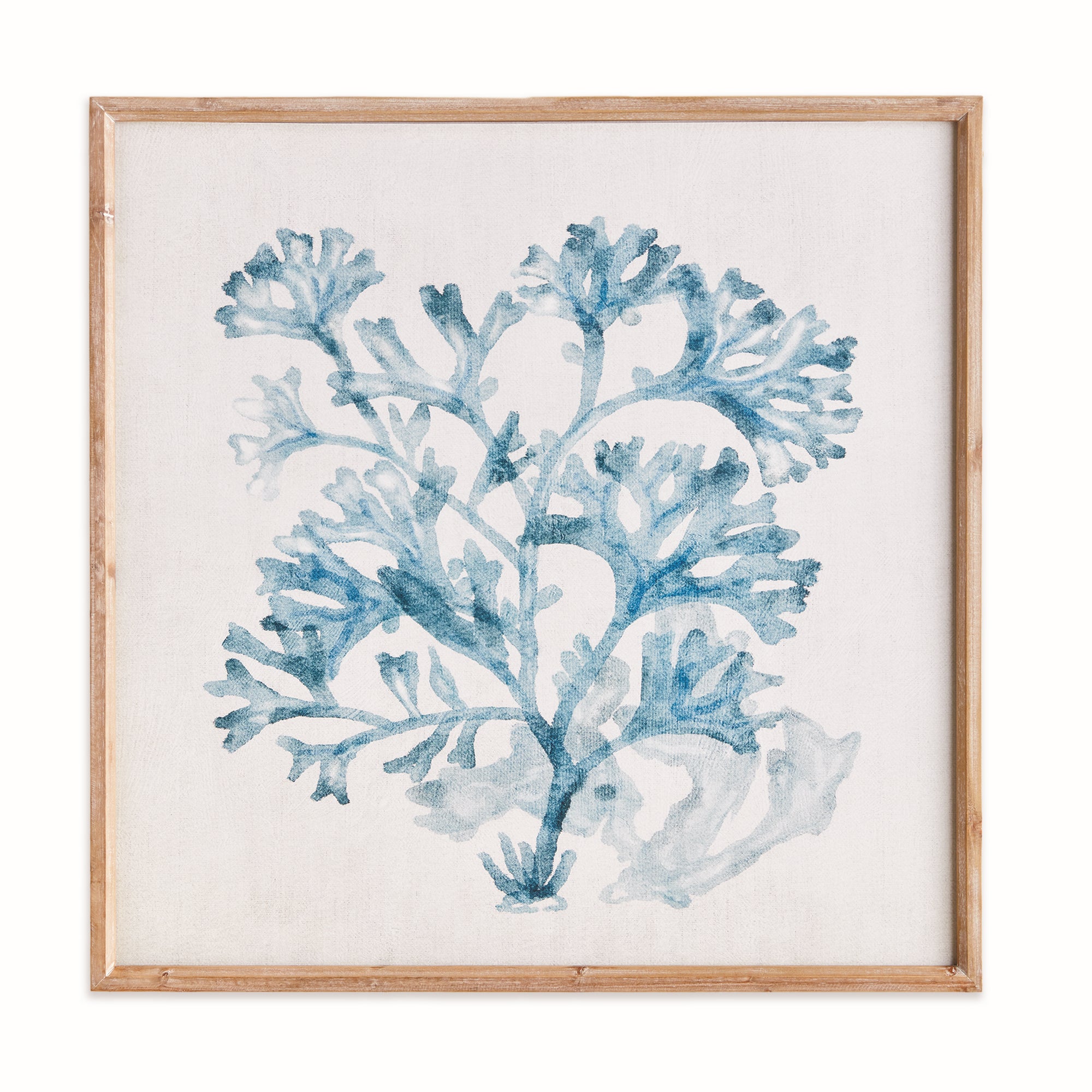 As elegant in style as it is in scale, this serene monochromatic blue coral framed print is signature upscale coastal chic. The soft, watercolor design and natural fir wood frame makes it ideal for home office, bedroom or living space.