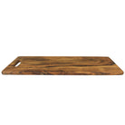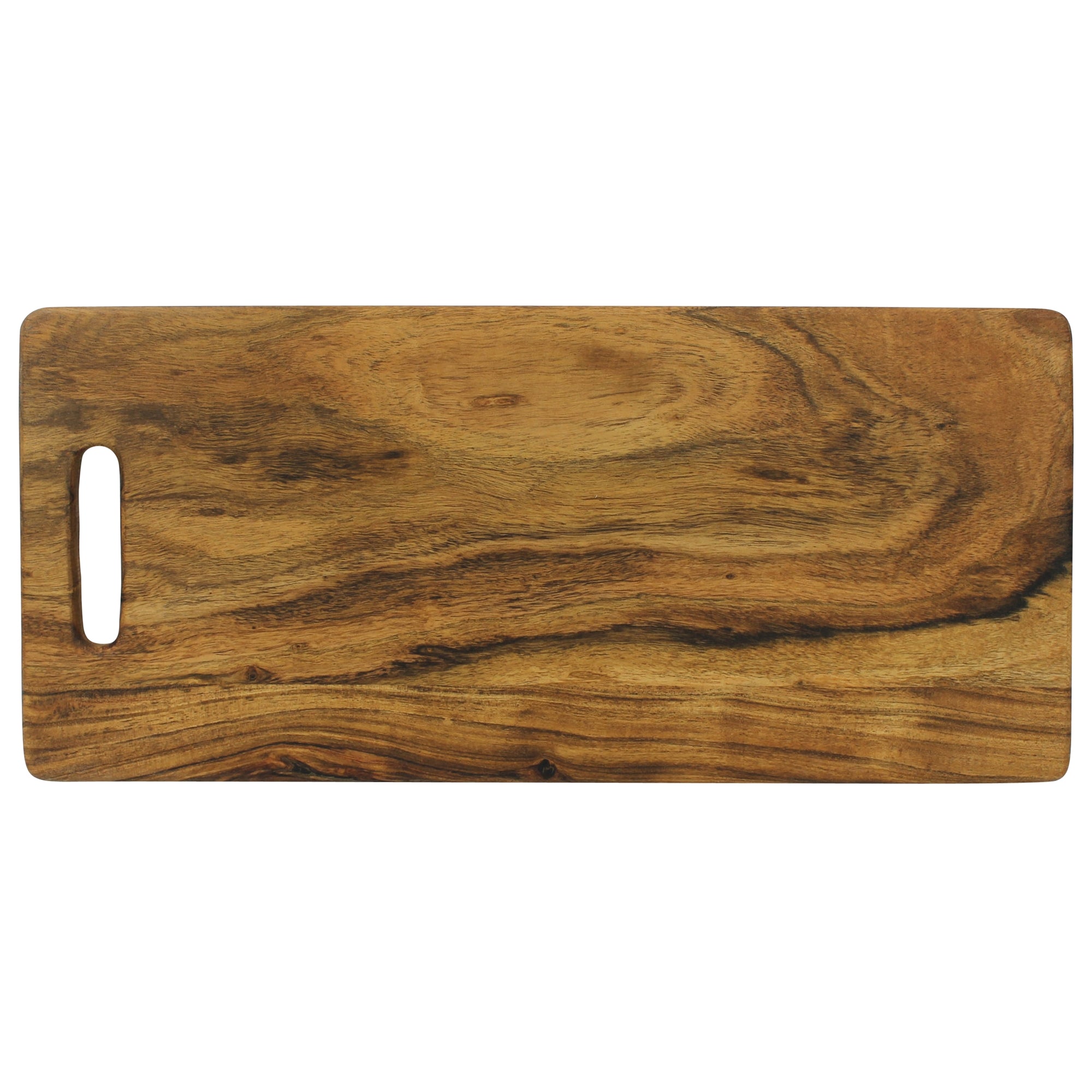 Crafted of acacia wood with a cut-out handle this cutting board is the new entertaining staple. Acacia is known for its exceptional durability. The hue and wood grain will vary. Rinse with soap and water and dry immediately, apply oil as needed. Prior to packing each piece is rubbed with oil for longevity and the oil may transfer to paper, this is non-harmful.