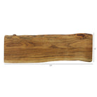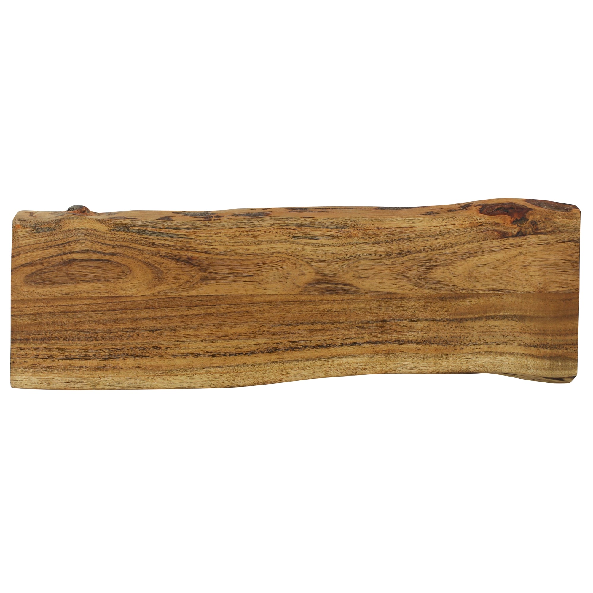 Crafted of acacia wood with a live edge this cutting board is the new entertaining staple. Acacia is known for its exceptional durability. The edge is natural, and each will vary. Rinse with soap and water and dry immediately, apply oil as needed. Prior to packing each piece is rubbed with oil for longevity and the oil may transfer to paper, this is non-harmful.
