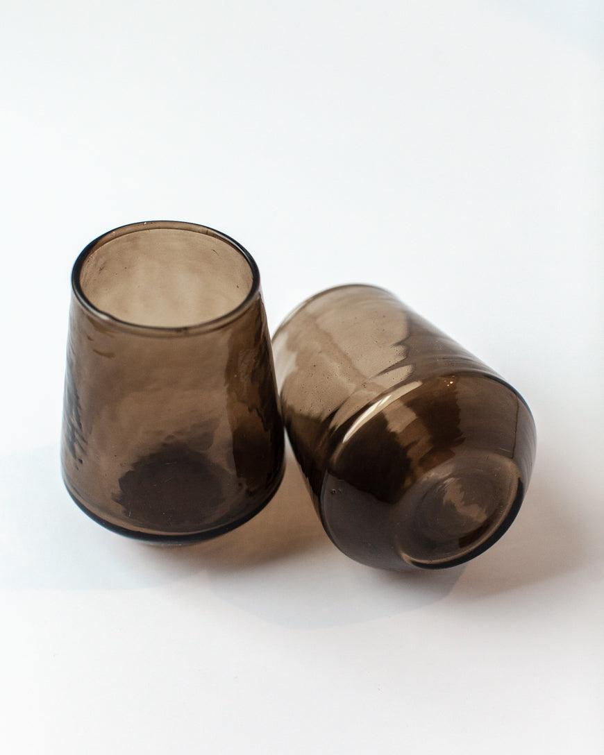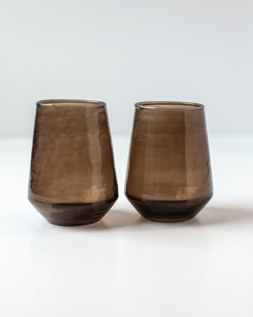 Handblown Hammered Glass Water Tumbler, Smoke - set of 4