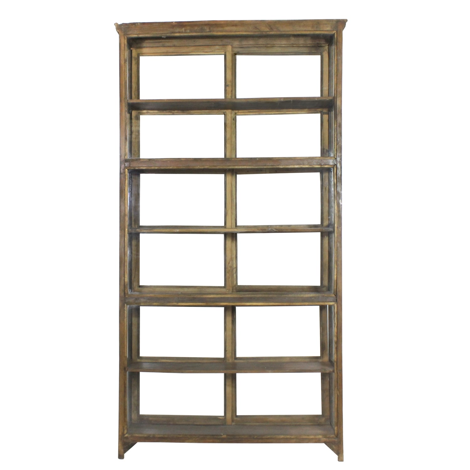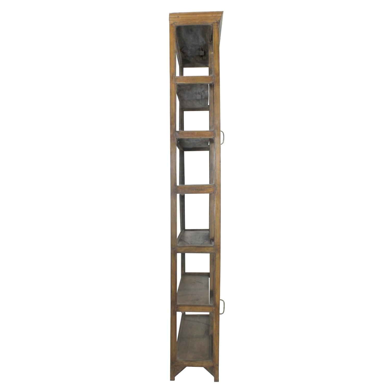 Crafted of salvaged mango wood, our slim profiled Shop Cabinet features 6 shelves to display upon behind 2 sets of sliding doors. Do to the rustic nature of the salvaged wood; wood grain, texture and color may vary. Ships by truck.