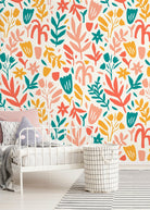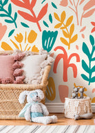 Introduce a burst of creative energy into your home with this Abstract Floral Wallpaper. Featuring a dynamic pattern of modern botanical cutouts in lively shades of teal, coral, and yellow, this wall art is perfect for creating a cheerful and artistic focal point. The playful, abstract shapes of flowers and leaves bring a contemporary and spirited feel to any interior design, making it an excellent choice for a statement wall or a full room transformation. Designed for effortless style updates, this removable wallpaper is available in both peel and stick and traditional options. The peel and stick wallpaper is ideal for DIY home decor projects, allowing for easy application and clean removal, which is perfect for renters or those who love to frequently change their style. This versatile wall decor solution works beautifully as kids' room wallpaper, living room wall art, or a vibrant backdrop in a home office, infusing your space with color and personality. Our commitment to quality ensures a superior product that is both beautiful and safe for your home. Made in the USA using eco-friendly, non-toxic inks with zero VOCs, this wallpaper is a healthy choice for any environment, including nurseries and bedrooms. The premium, thicker material is scratch-resistant and guarantees a high-quality print with sharp details and consistent color, ensuring your interior design vision comes to life flawlessly.
