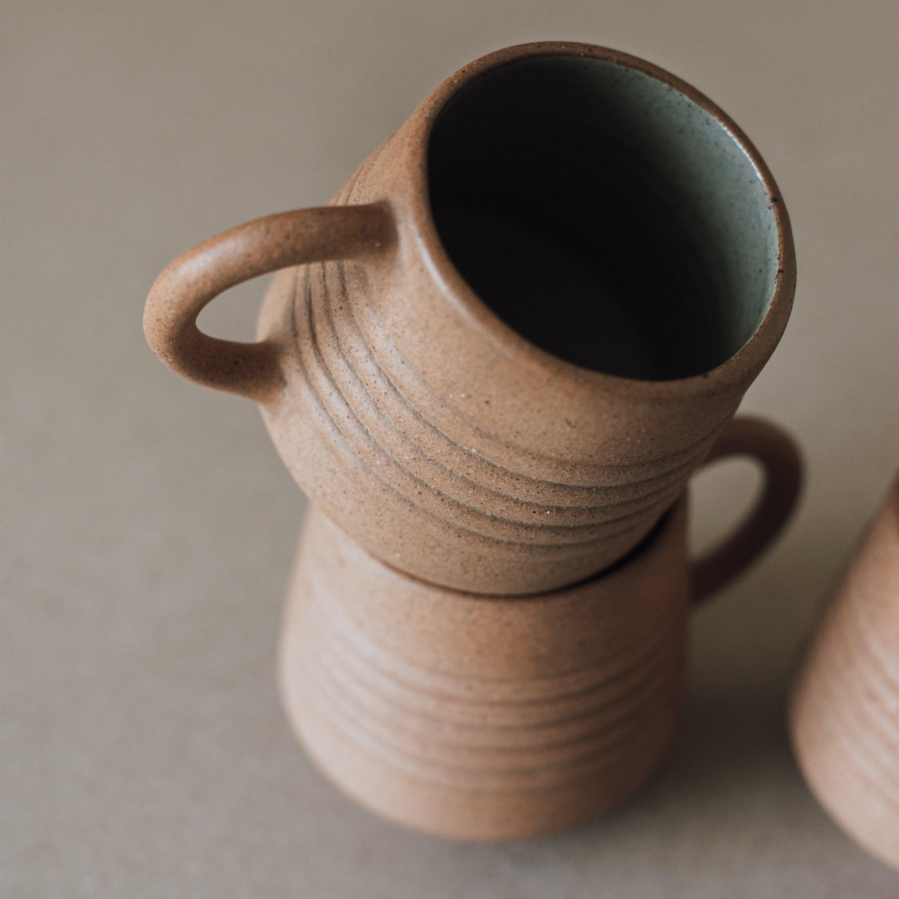 Handcrafted 9.5 oz cup made from ceramic and local clay. Glazed only in the inside, the final earth tones and textures are the result of the different combination of clays exposed to the heat of the kiln fire.
