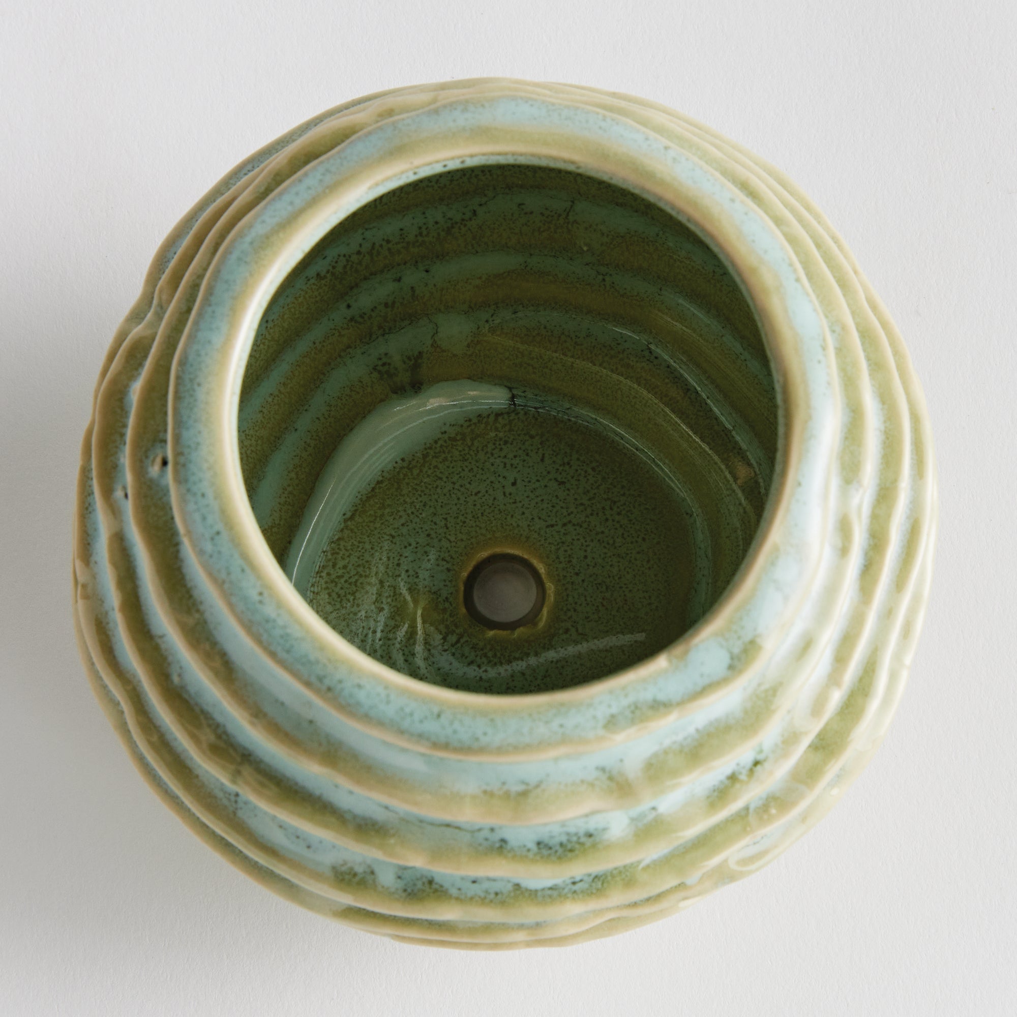 With a reactive glaze and hand finished ribbing detail, this charming sage green pot is a great find. Plant your favorite lush greens or prized orchids & watch them flourish in style.