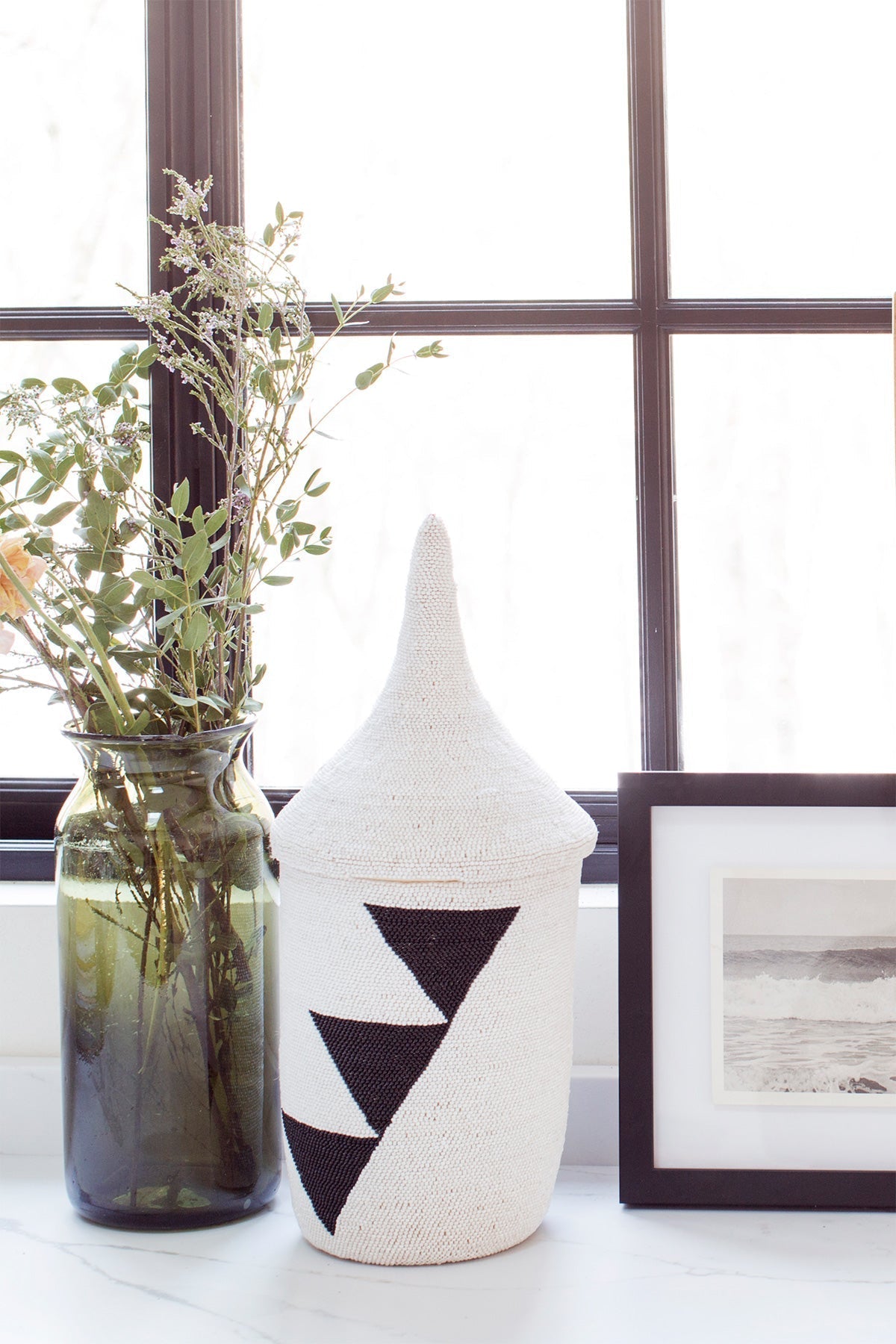 - White with black pattern beading