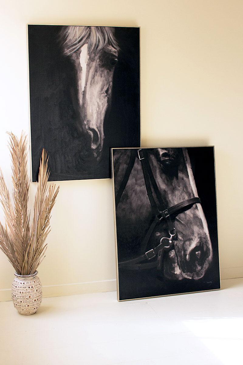 Black & White Front View Horse With Silver Frame Acrylic Painting