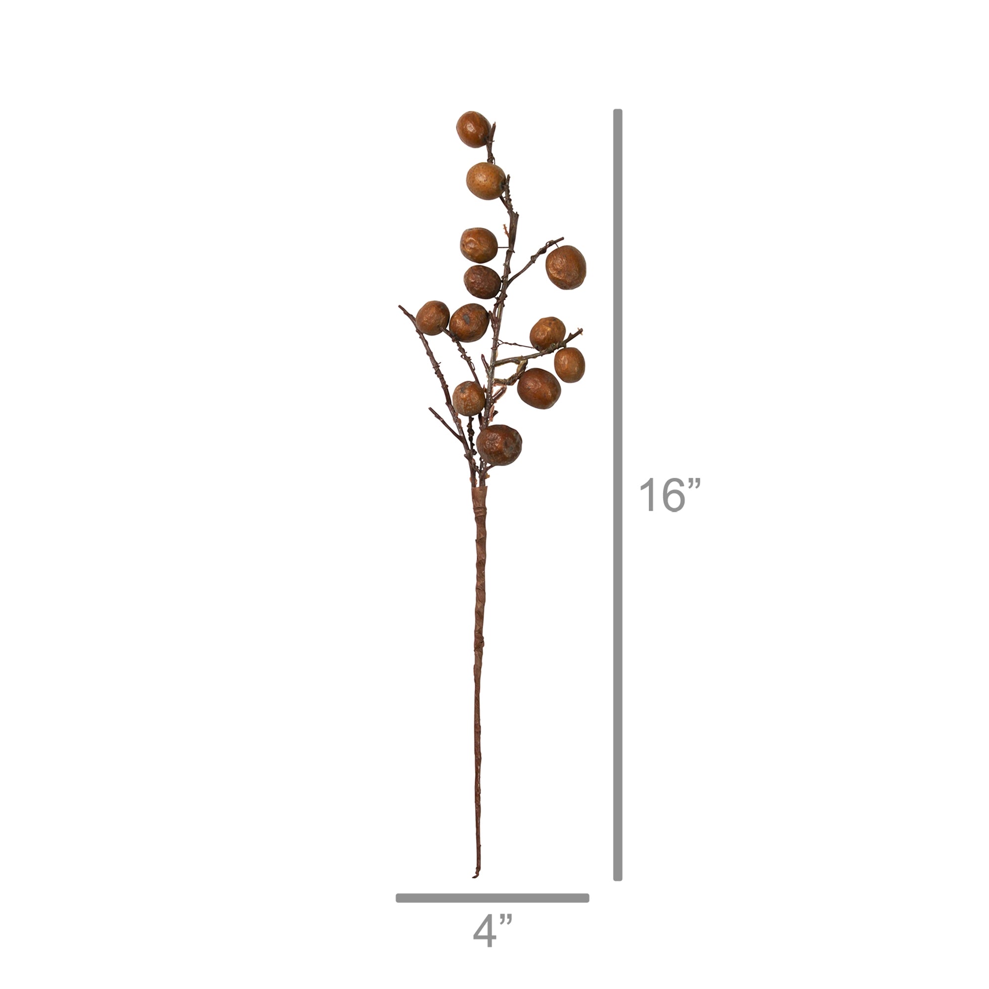 Handcrafted of natural chinaberries attached to a wire twig our botanical stem effortlessly creates dimension and texture. Cluster in vases, bind together to create a wreath or swag, organically arrange them down a table or across a mantle-scape.