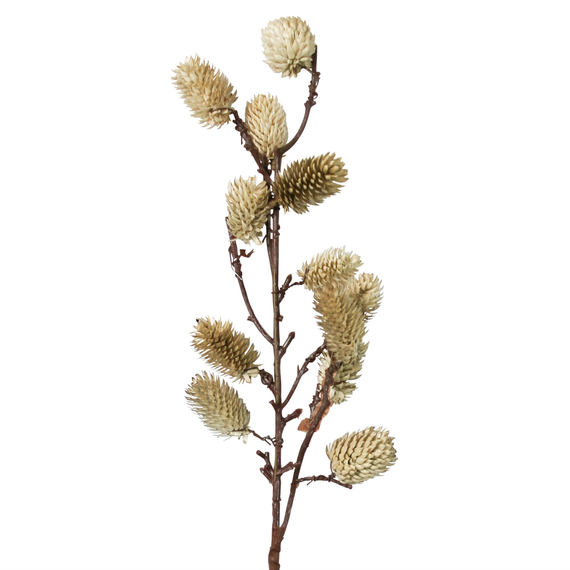Handcrafted of natural white sage pods attached to a wire twig our botanical stem effortlessly creates dimension and texture. Cluster in vases, bind together to create a wreath or swag, organically arrange them down a table or across a mantle-scape.