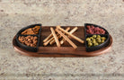 - Kalmar Home's Acacia Wood Charcuterie and Serving Tray - complete with 4 Black or White Triangular Ceramic Dishes - seamlessly blends functionality with elegance.