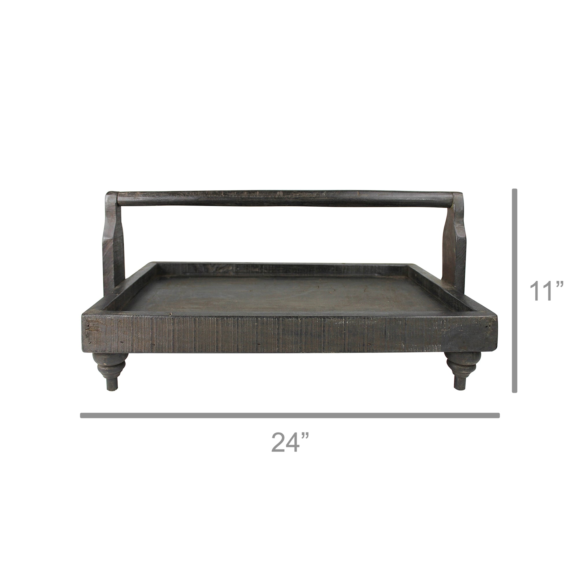 Made of reclaimed wood with a dark, waxed finish this serving tray is suited for myriads of uses. On a buffet it could hold plates, flatware and napkins, next to a side chair it holds books, magazines and remotes.