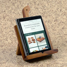 - Crafted from premium quality acacia wood, this innovative holder serves a dual purpose – it securely props up cookbooks, magazines, or recipes while also accommodating a tablet or smartphone.