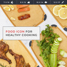 - Food Icon Design - This cutting board features a selection of food icons, including fruits, cooked food, raw food, and vegetables. With these helpful icons, it serves as a valuable tool to help you stay on track with your health goals, encouraging you to incorporate a variety of nutritious foods into your diet. Whether you're preparing a meal or just looking for a little inspiration, this cutting board is an excellent addition to any kitchen.