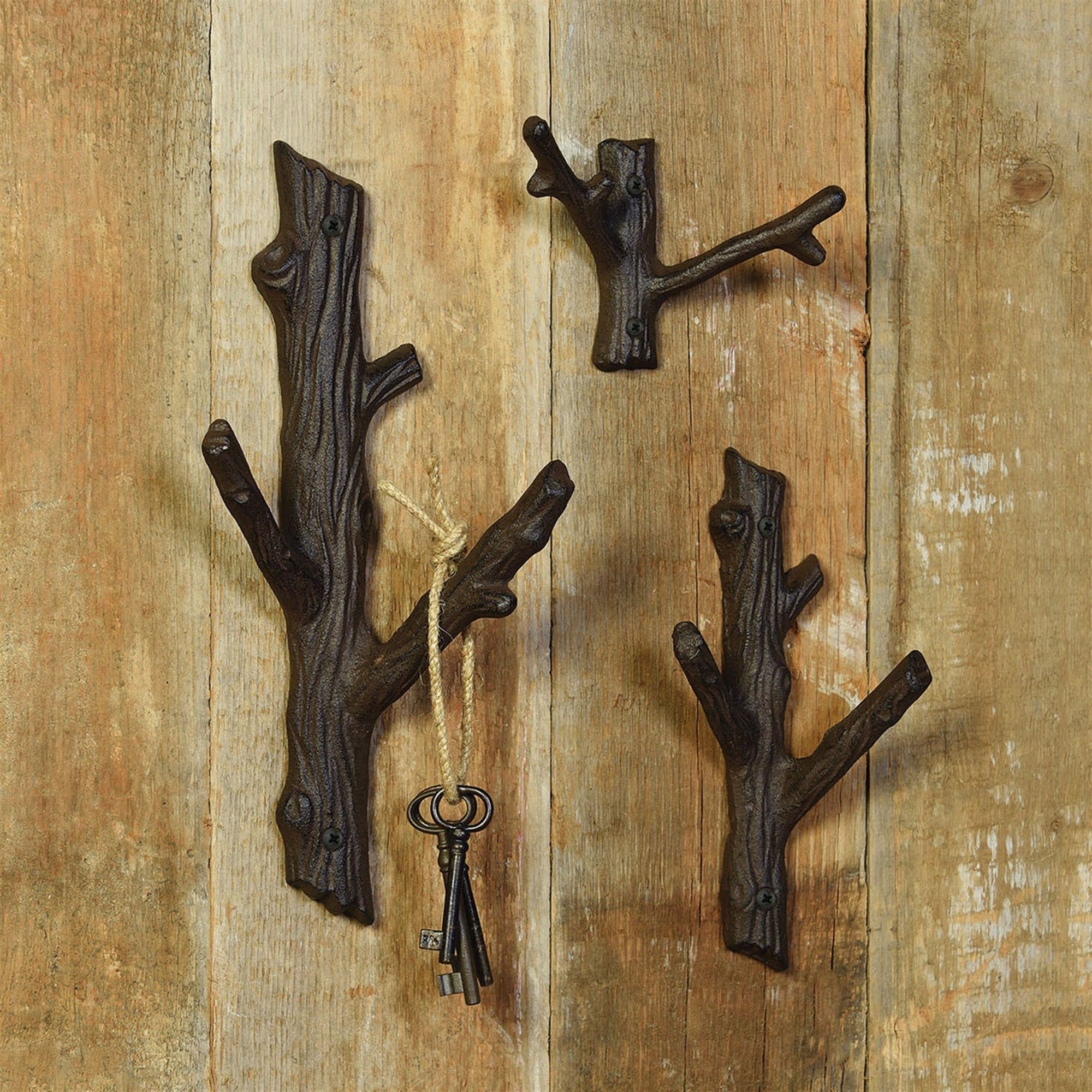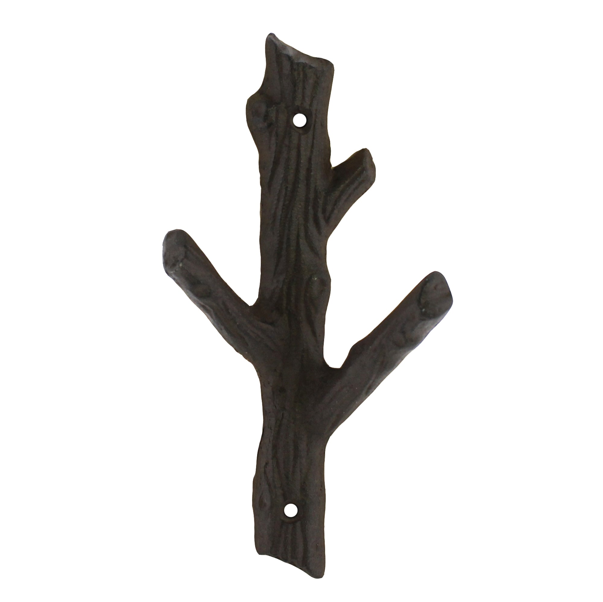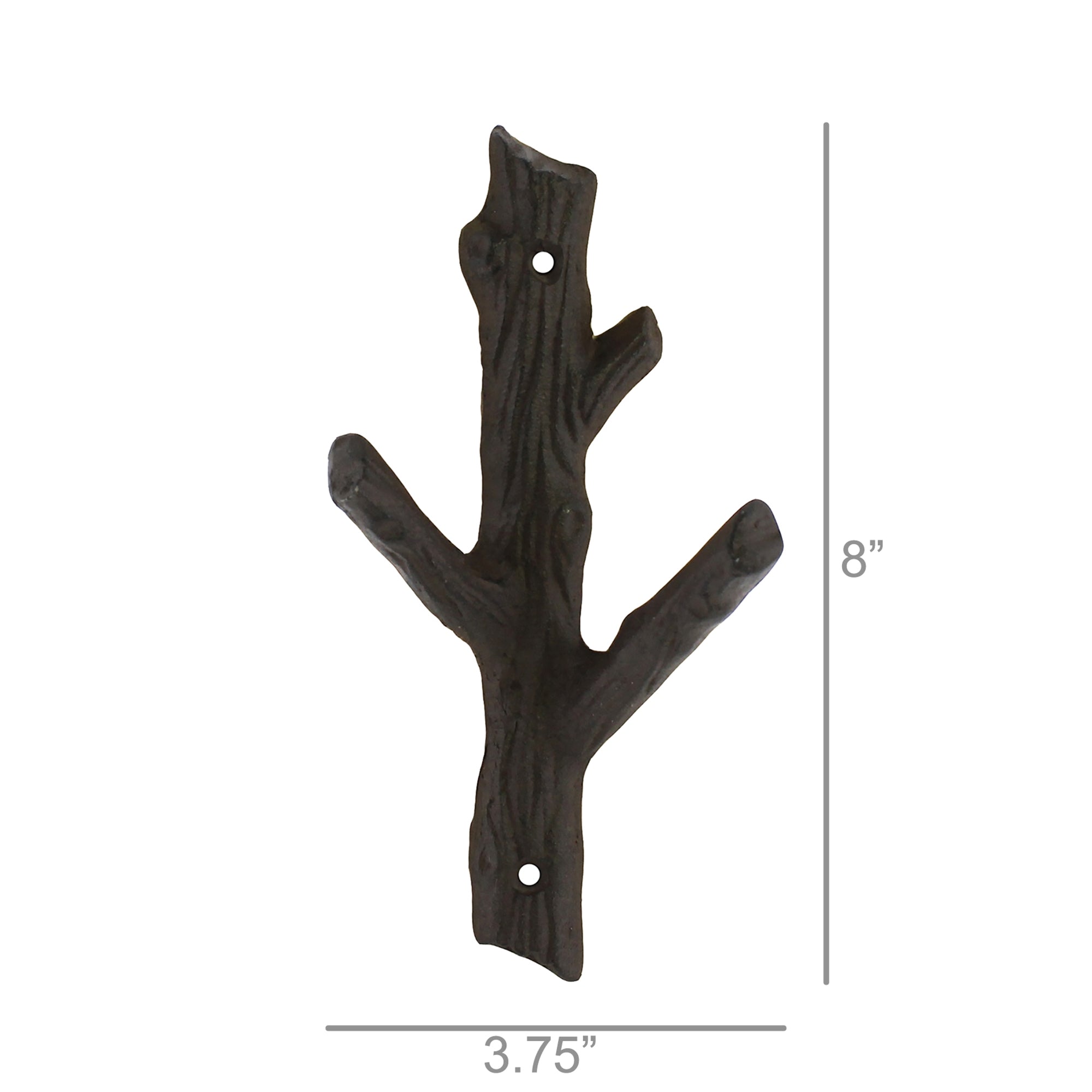 Faux Bois Cast Iron Wall Hook, Branch - Sm - Brown