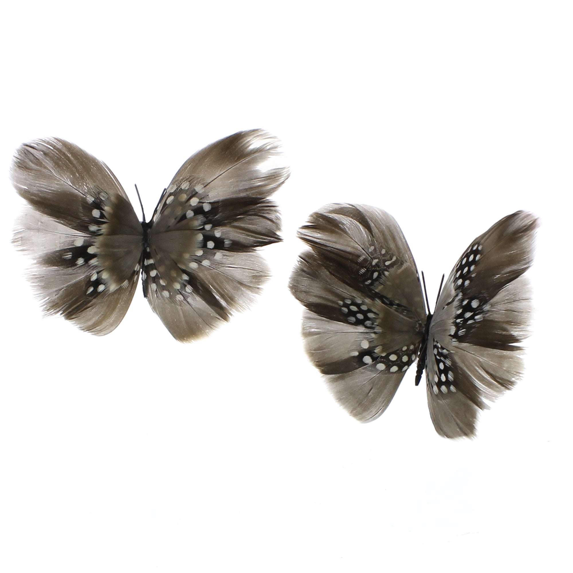 An assortment of eight butterflies made of soft and delicate natural feathers feature either a discreet clip or magnet. A unique addition to floral arrangements, place settings, gift-wrap or home decor!