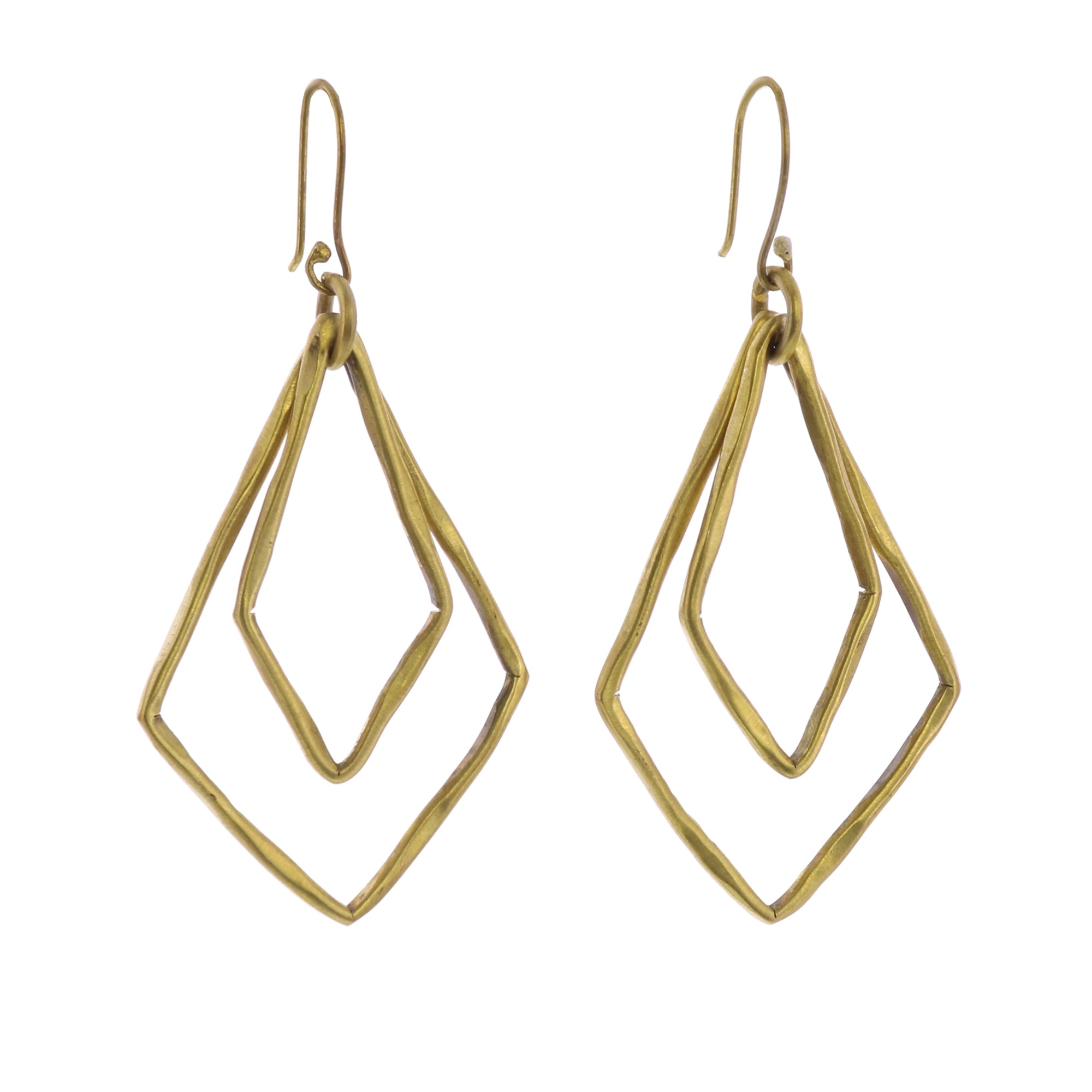 These duos of forms made of hammered brass dangle to catch light with each and every movement. 1.5"x2.75"