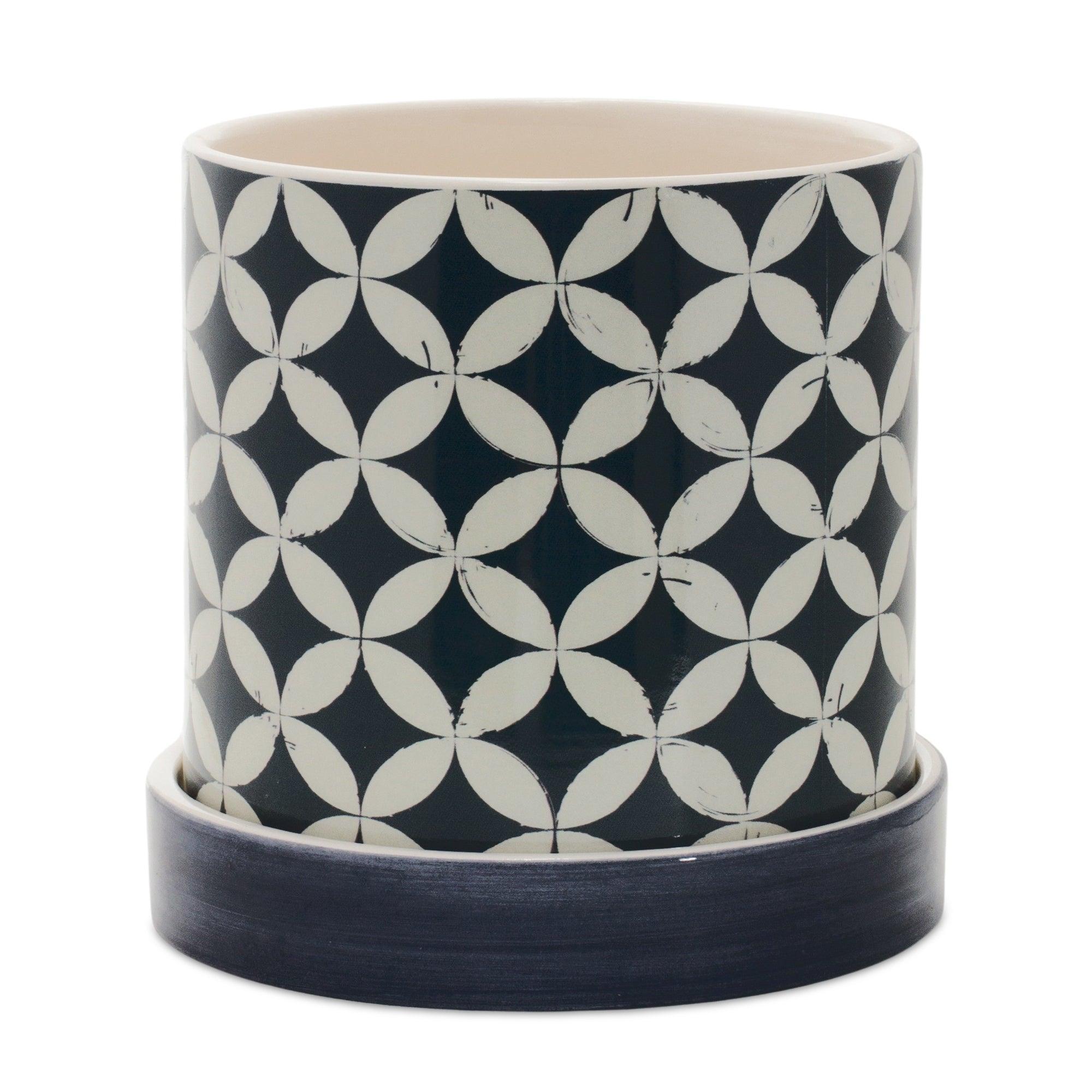 Display your plants in style with this stunning set of Decorative Pots. Featuring two assorted sizes, the cool blue and white hues paired with the geometric and striped pattern design makes this set a great addition to your everyday home decor. The quality dolomite composition and glaze finish is sure to last for seasons to come. Complete the look by dropping a faux potted plant or floral arrangement in each pot.