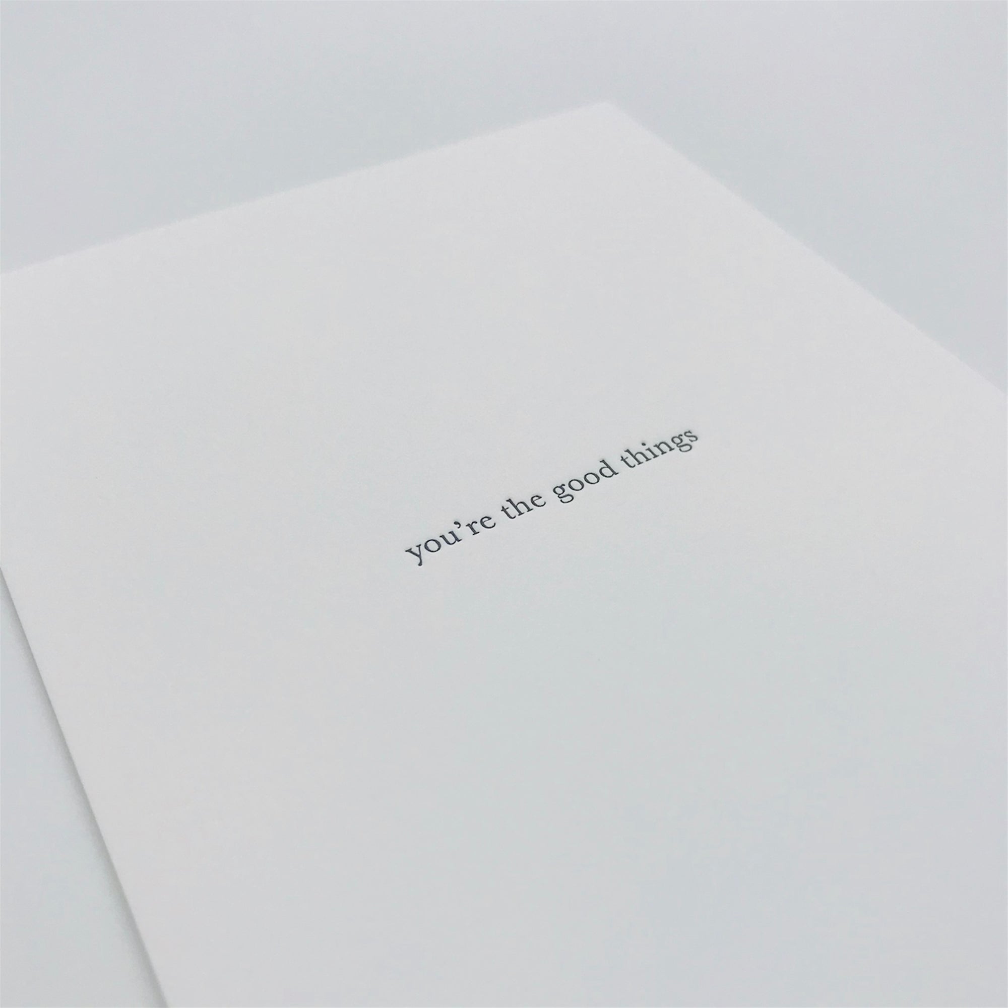 Letterpress greeting card on ultra thick cotton card stock. Paired with a recycled paper envelope. Inside left blank for personal expression.