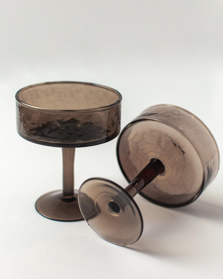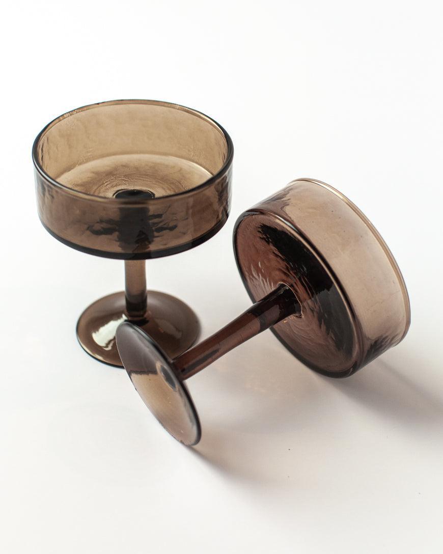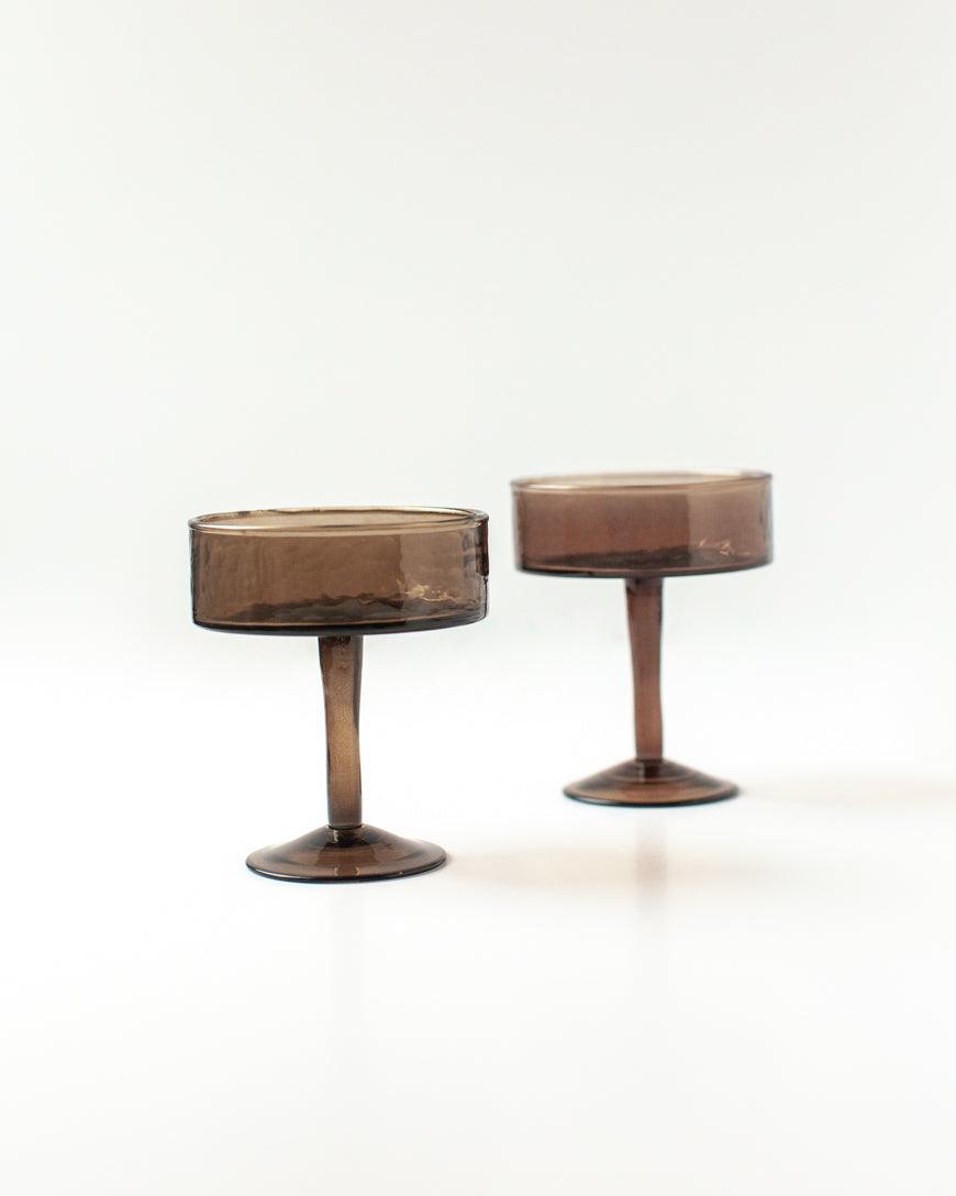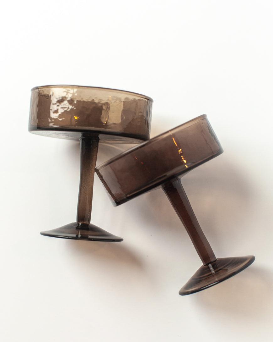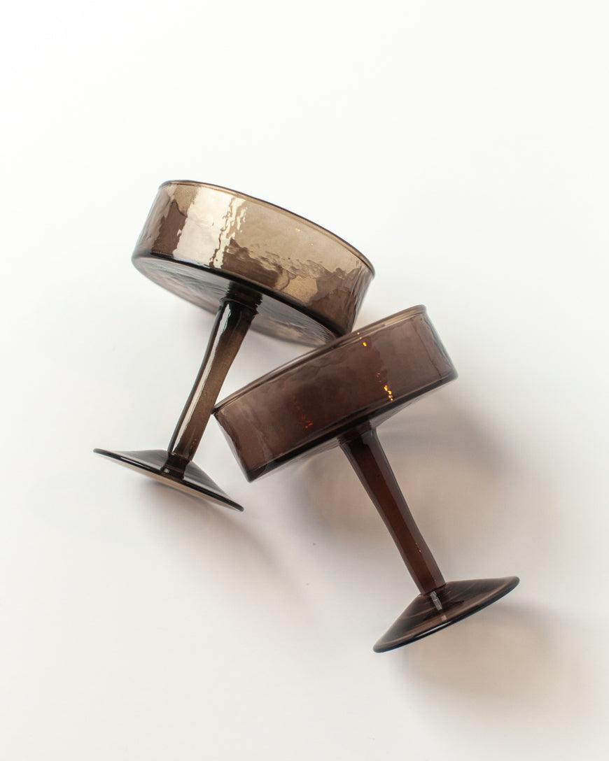 Handblown Hammered Coupe Cocktail Glasses, Smoke - set of 4