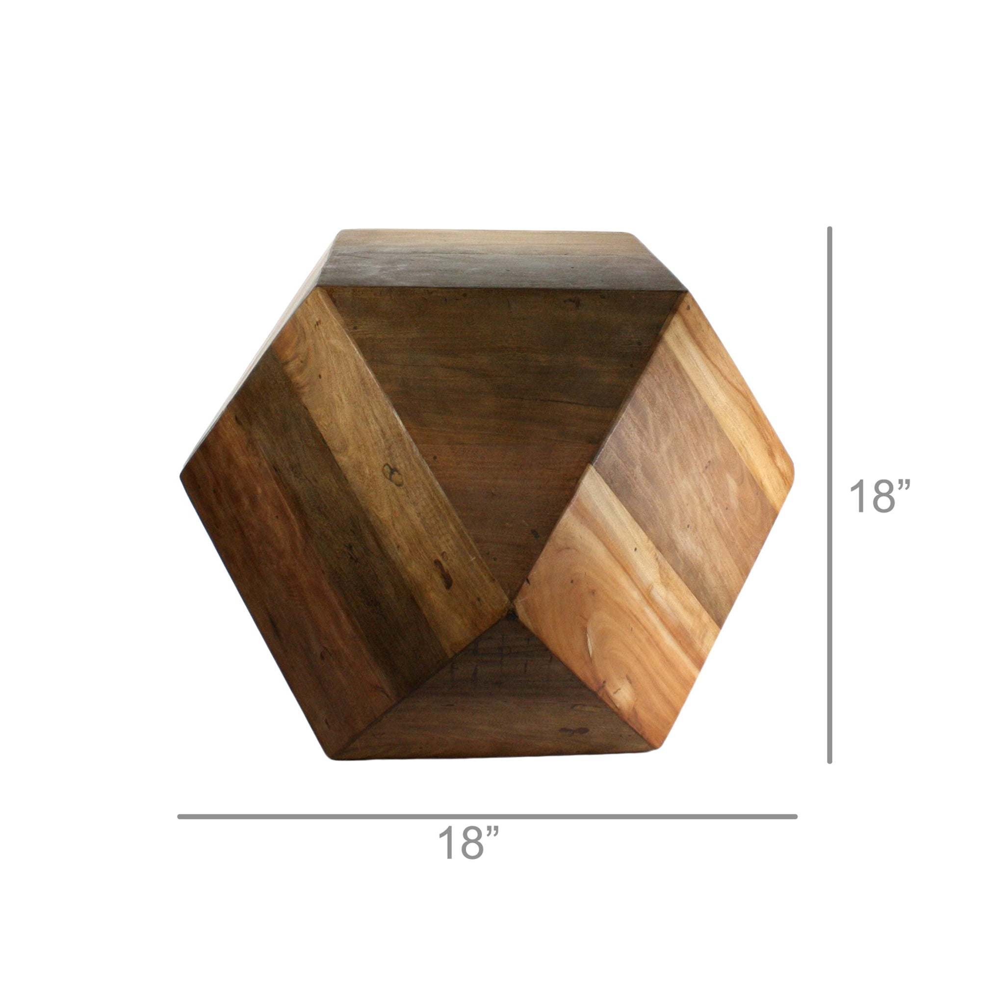 Salvaged wood has been given new life in sturdy, fourteen-faced, geometric shapes of three distinct sizes that prove perfect for risers and other displays. HomArt continues to add innovation to green living with the large Icosahedron Wood Block, measuring 18 x 18 x 18. The large Icosahedron Wood Block may even be used as a small stool and is handcrafted-so each varies in finish, hue, and grain. Wipe with dry cloth Square Top is 13x13 Inches