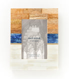 Our river inspired Kaveri Collection incorporates traditional Indian art forms in modern designs, featuring sustainably harvested mango wood, ethically sourced bone, and brass inlay. Master artisans in Old Delhi skillfully hand carve wood and bone elements to create unique, eye catching inlay designs. This handcrafted photo frame is thoughtfully designed for stylish display of a 4x6 photo or print, featuring a multi-tone, clean line design expertly crafted from mango wood, bone and brass. The picture frame features a two-way table top easel and d-rings for hanging.