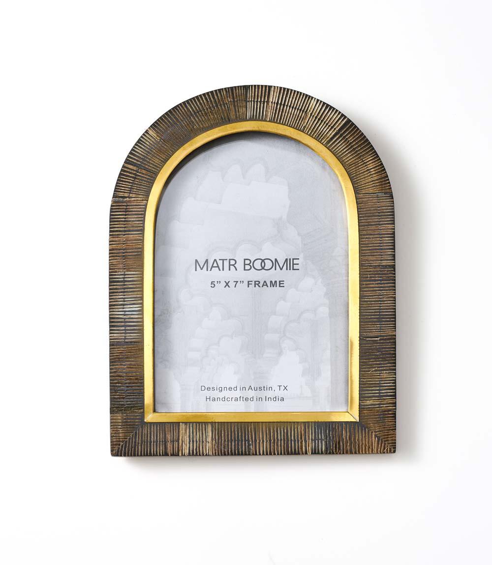 Kerala 5x7 Arch Picture Frame - Carved Horn, Brass Inlay