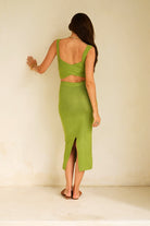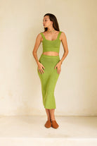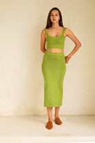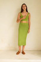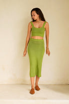 This soft ribbing shapes the body-skimming fit of this easygoing skirt knitted from a soft cotton yarn fabric contours to your silhouette for a look that easily transitions from the office to evening.