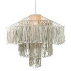 Cotton rope is tied in varying lengths around a metal frame creating a boho-chic pendant lamp. 5' foot cloth wrapped cord. Light bulb not included.