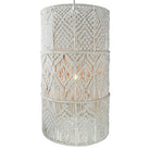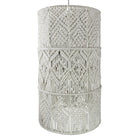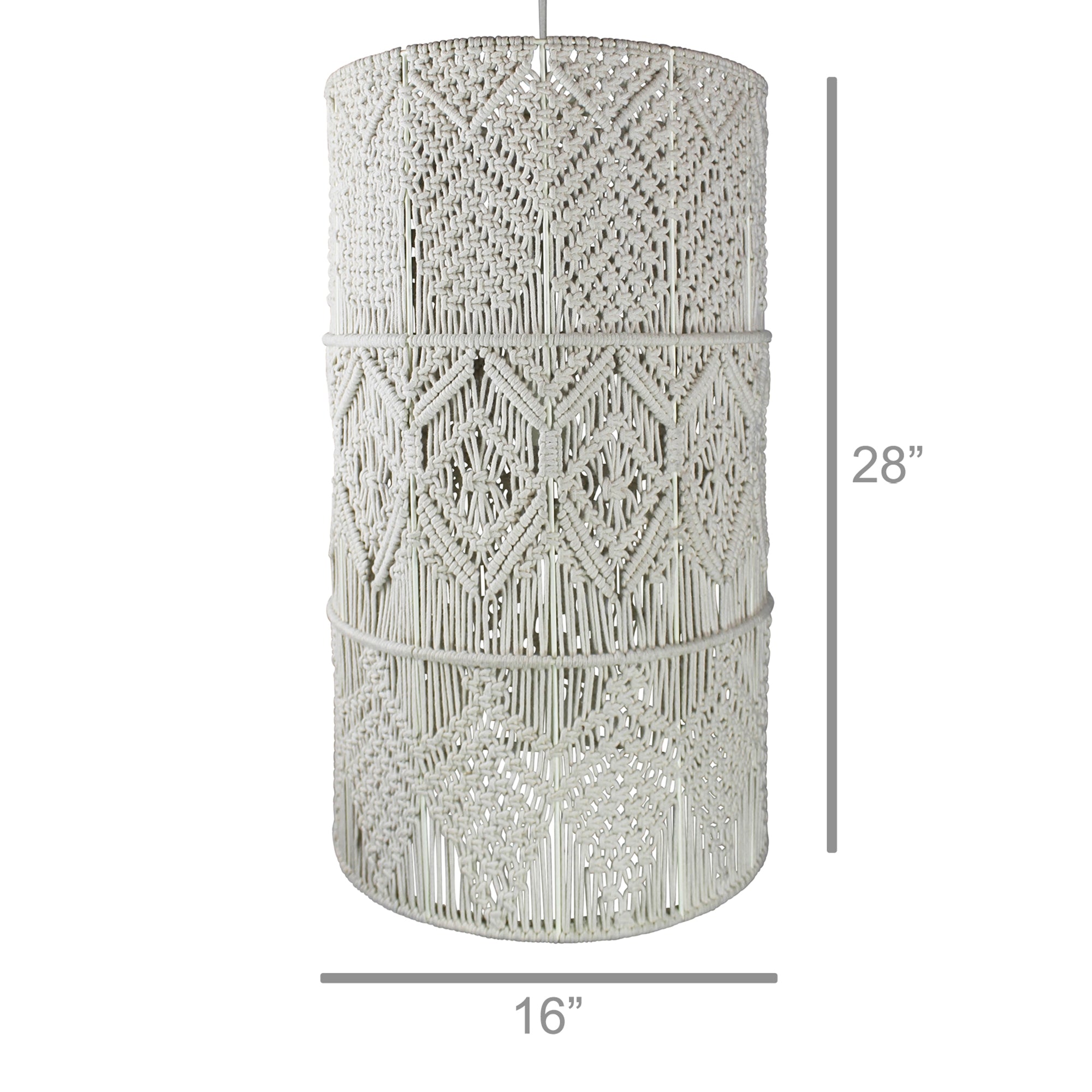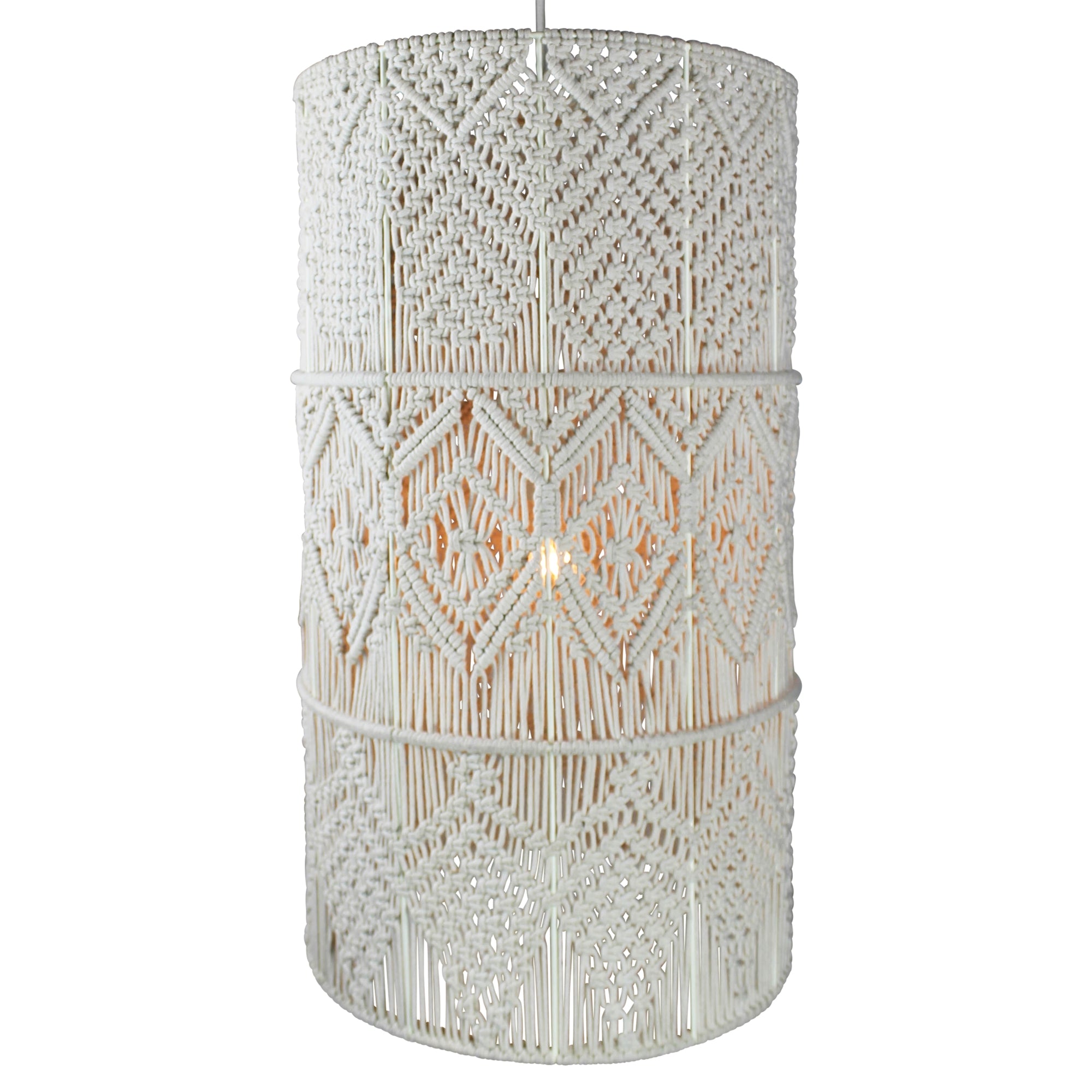 Cotton rope is woven in an intricate pattern over a metal frame creating a boho-chic pendant lamp. 5' foot cloth wrapped cord. Light bulb not included.