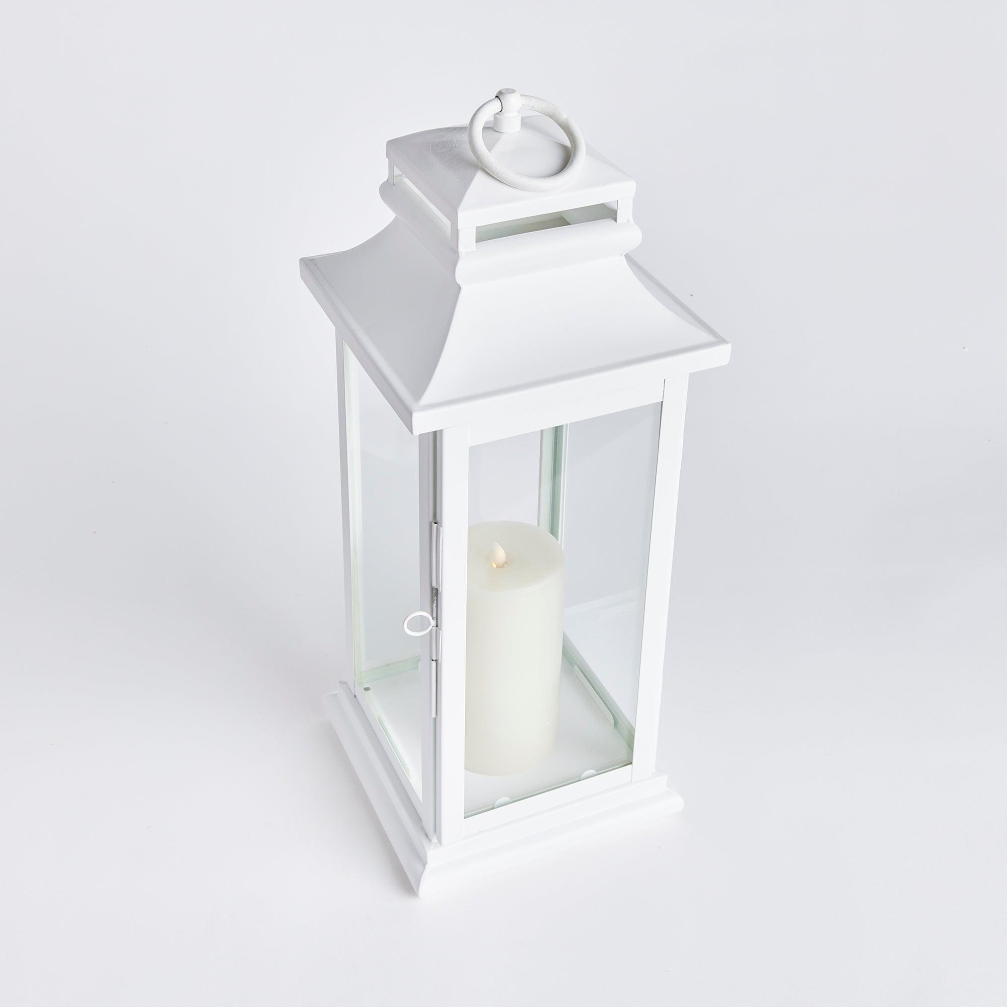 This tall, powder-coated stainless steel lantern in a matte white is tailor-made for your outdoor space. We've even included the drain holes to keep the rain away.