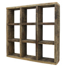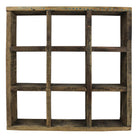 Rustic wood planks are fashioned together to create a 9-cube wall shelf, ideal for displaying vintage curios or organizing bathroom product. 2 backside hangers.