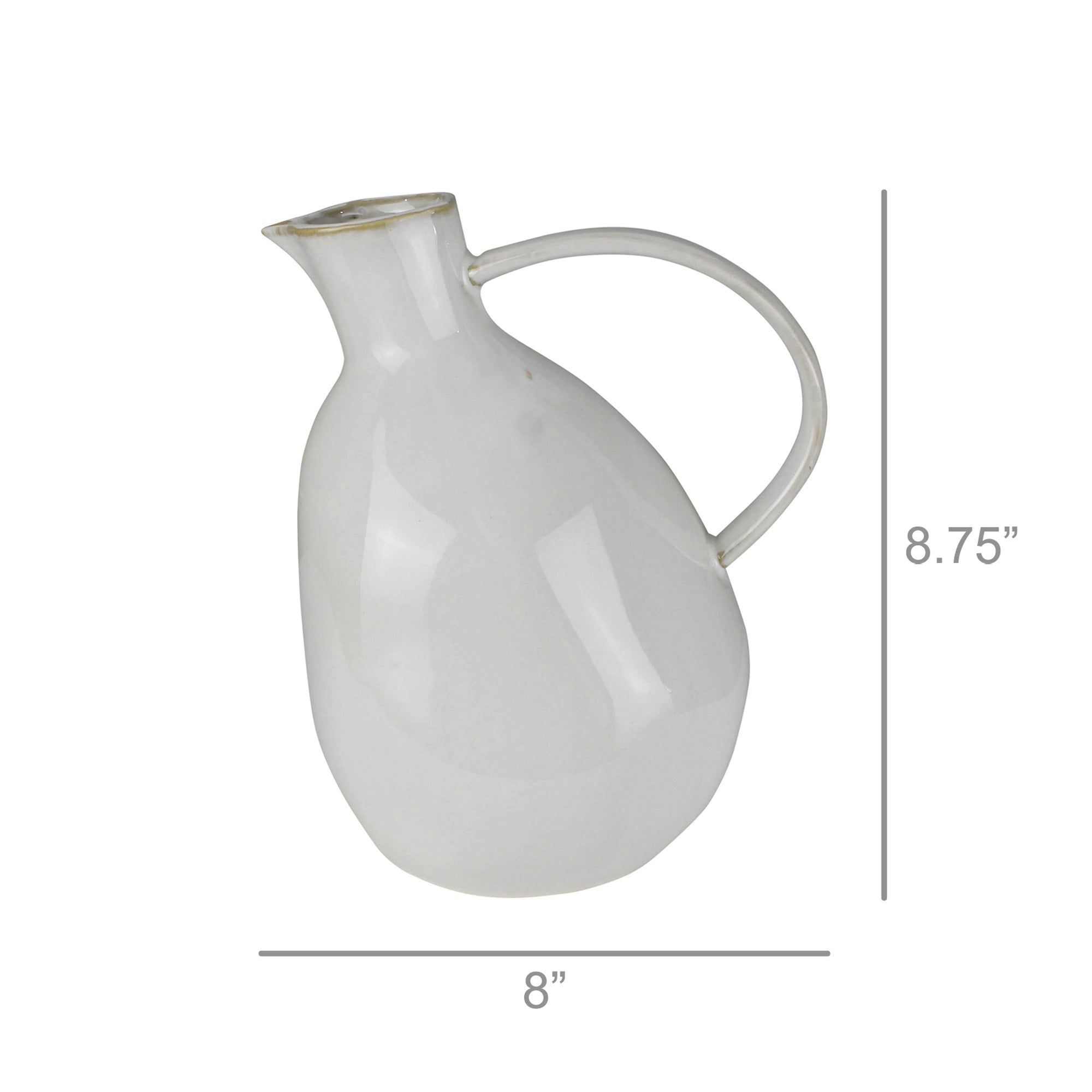 Crafted from stoneware and finished with a gloss white glaze, this pitcher pairs a simple silhouette with a striking oversized handle. The perfect addition to any serve ware collection, pouring water at dinner or orange juice at breakfast.