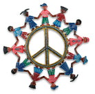 Painted Children of Peace is a painted Haitian metal wall art piece made for both indoor and outdoor decorative use.