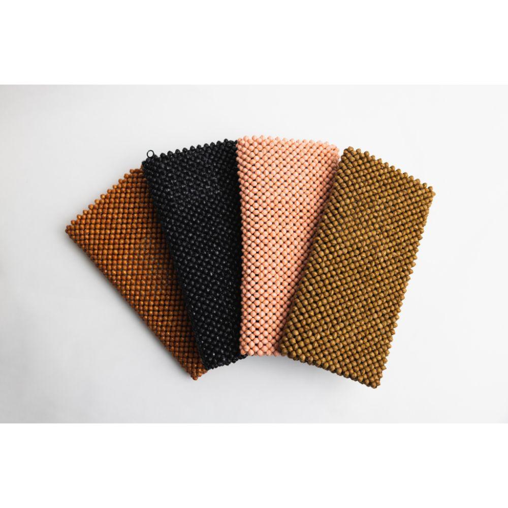 Made from recycled paper, varnished with organic varnish. The inner pocket is sewn in black cotton, lined and has a zip.