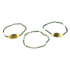 Glass beads of undulating colors, tones and patterns are paired with brass charms and strung on flex-cord. Sweet on their own and even better when stacked. Assortment of 3 brass charms and bead patterns. 2.5” diameter