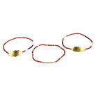 Glass beads of undulating colors, tones and patterns are paired with brass charms and strung on flex-cord. Sweet on their own and even better when stacked. Assortment of 3 brass charms and bead patterns. 2.5” diameter