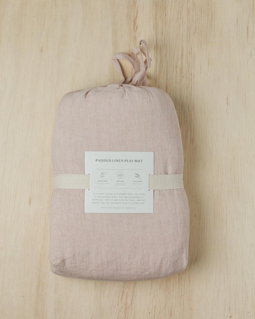 Hand-woven with love, our quilted linen play mats are made from the very softest natural fibers and dyed in delicate, neutral hues. Thick cotton filling and our signature stone washed linen make this mat cozy, portable and easy to wash.