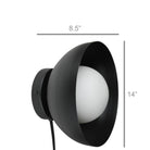Simple yet stunning this wall lamp brightens up a cozy corner or nightstand with a frosted glass globe nestled within a black semi-circle. 5' cloth wrapped cord, plug in cord. Requires E26 blunt tip light bulb, not included.