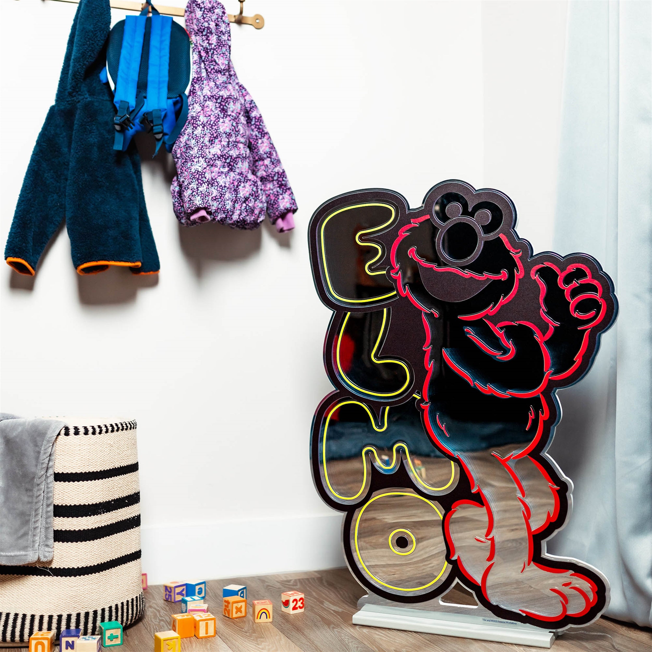 Bring joy, energy, and a touch of whimsy to any space with the Sesame Street Elmo Ekkolight! Featuring beloved friend Elmo standing beside a playful, colorful letter stack that spells out his name, this LED light shines in bright red and orange tones, spreading happiness wherever it glows. Perfect for kids' rooms, play spaces, or family holiday decor, this playful and heartwarming design is sure to brighten up your decor spaces. Created in colaboration with Sesame Street, let Elmo brighten up your space with his big smile and boundless energy!