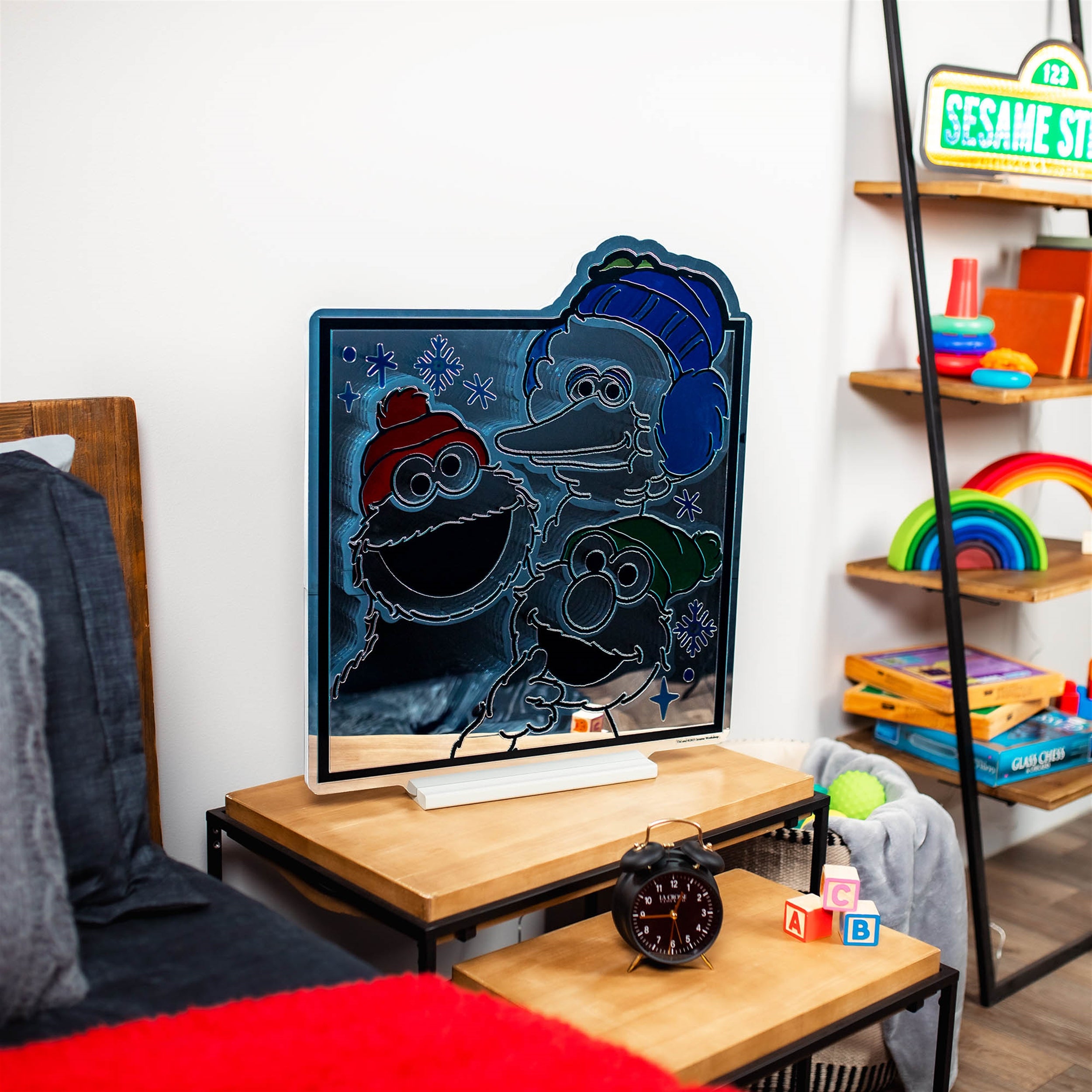 Elmo, Cookie Monster, and Big Bird are bundled up and ready for winter fun with the Sesame Street Holiday Friends Ekkolight! This festive LED light features your favorite friends in cheerful stocking hats and earmuffs, set against a snowflake-filled background in bright blue, yellow, and red tones—bringing a warm and wintry glow to your holiday decor. Perfect for kids' rooms, play spaces, or family holiday decor, this playful and heartwarming design is sure to brighten up your seasonal decor spaces. Created in colaboration with Sesame Street, let Elmo brighten up your holidays with his big smile and boundless energy!